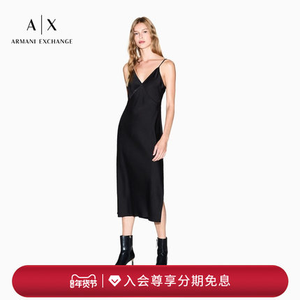 ARMANI EXCHANGE/阿玛尼春夏女士V领吊带中长款时尚小黑裙连衣裙
