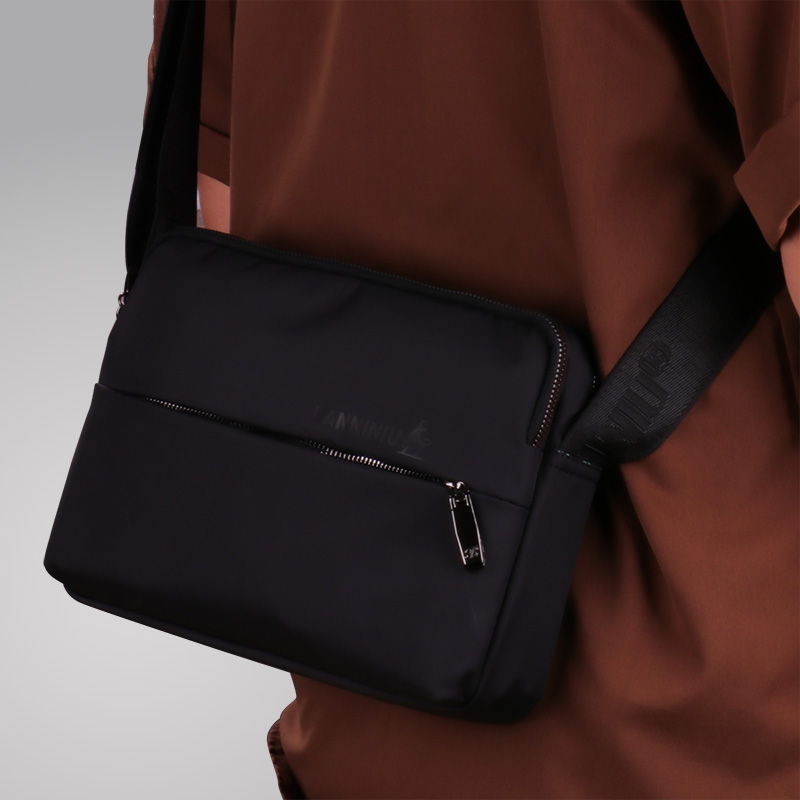 单肩包男背包斜挎包男士便携通勤包商务休闲大容量防水牛津布横款