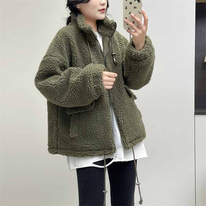 惠衣阁冬女长袖羊羔毛外套颗粒绒外套韩版宽松加厚学院风毛毛外套