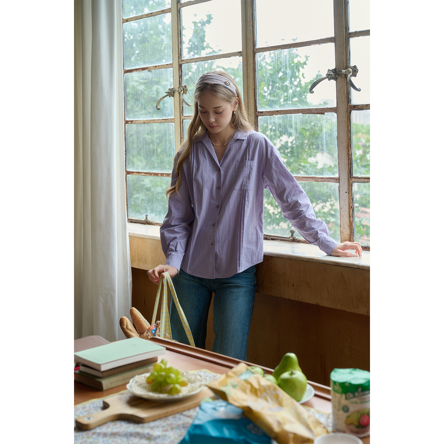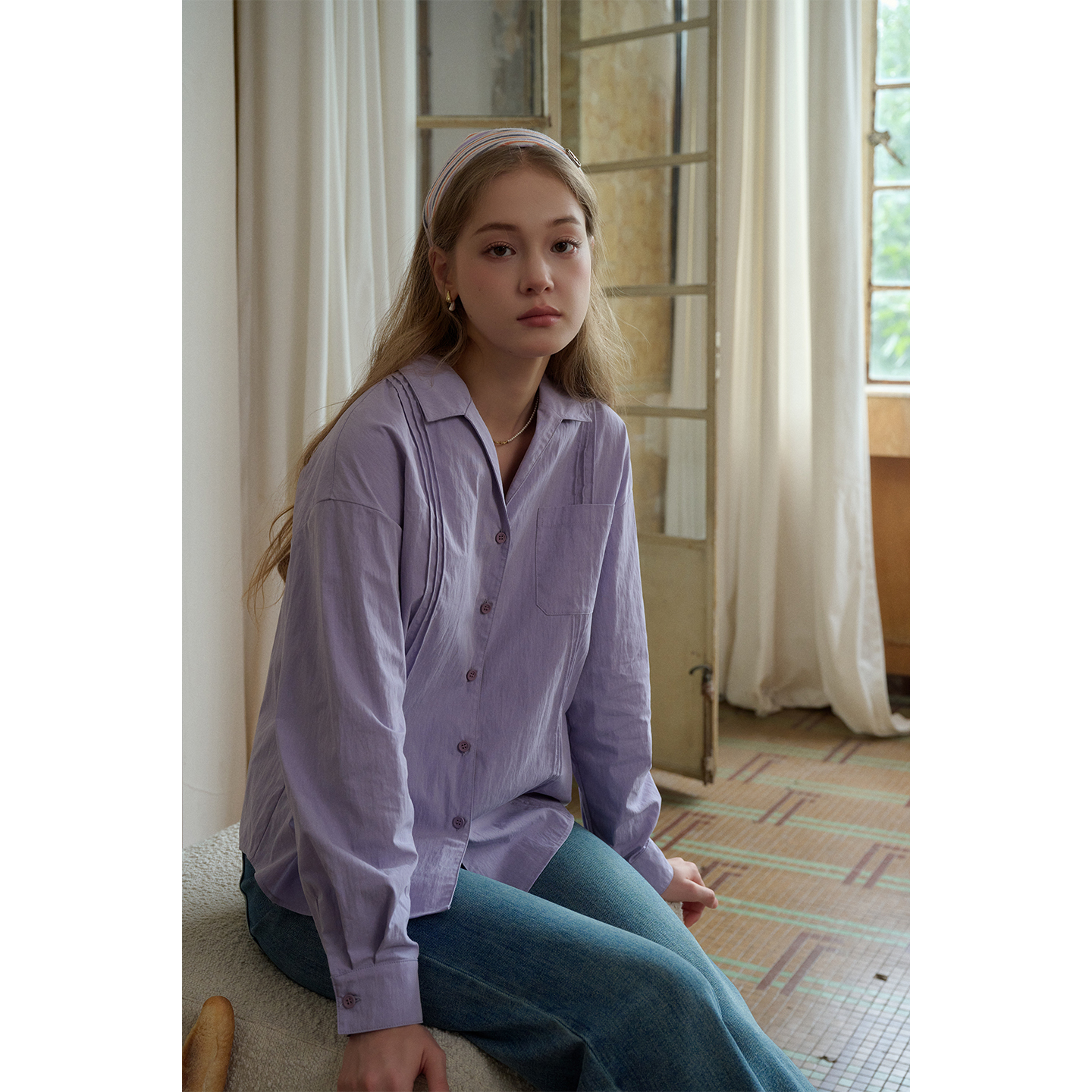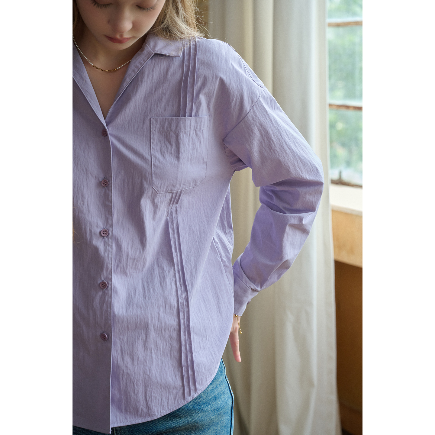 SimpleRetro紫藤物语 法式通勤T型翻领打条长袖衬衫女秋百搭上衣