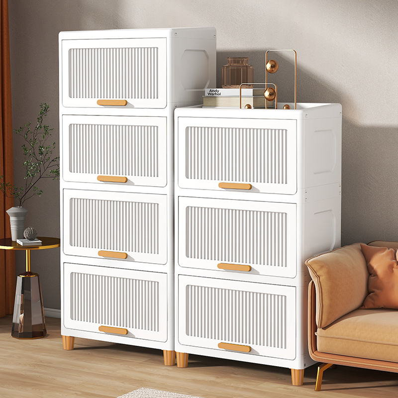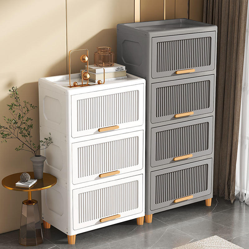 加厚塑料翻盖收纳柜置物柜家用零食柜多层卫生间置物架衣服收纳箱