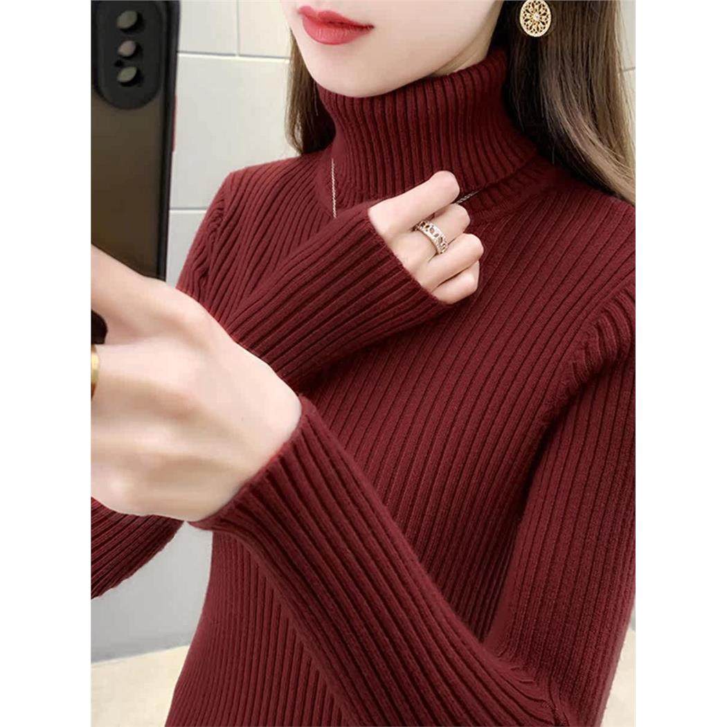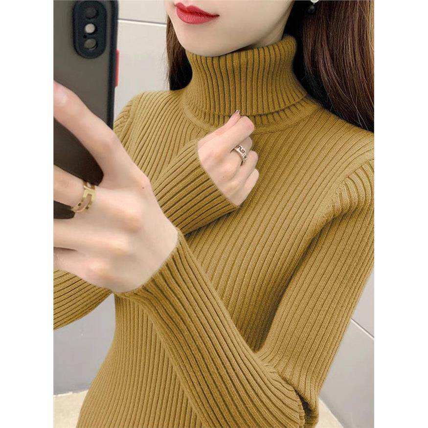 灰色高领修身长袖内搭针织打底衫女秋冬2025新款慵懒加厚加绒毛衣