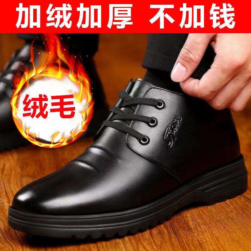 冬季皮鞋男加绒加厚商务休闲皮鞋男士真皮保暖棉皮鞋中老年棉鞋男
