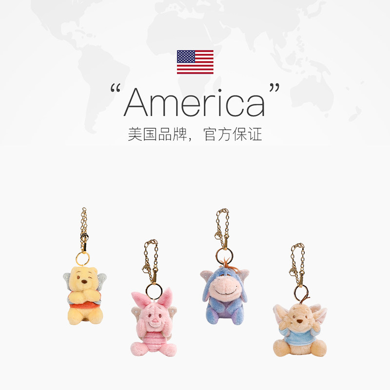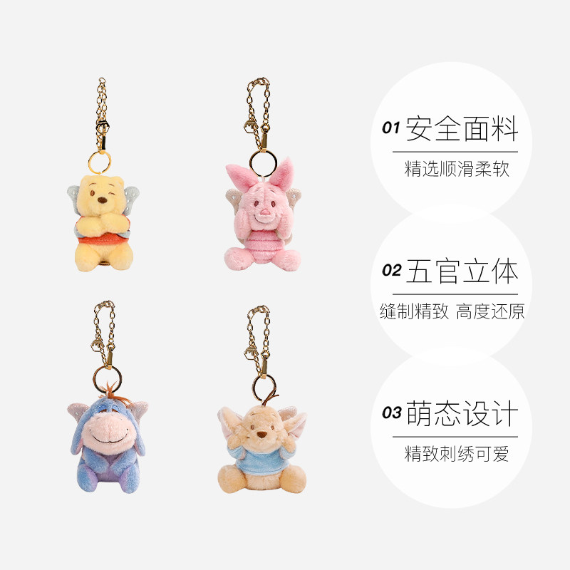 【自营】小熊维尼包包挂件迪士尼正版蝴蝶仙子皮杰可爱毛绒小玩具