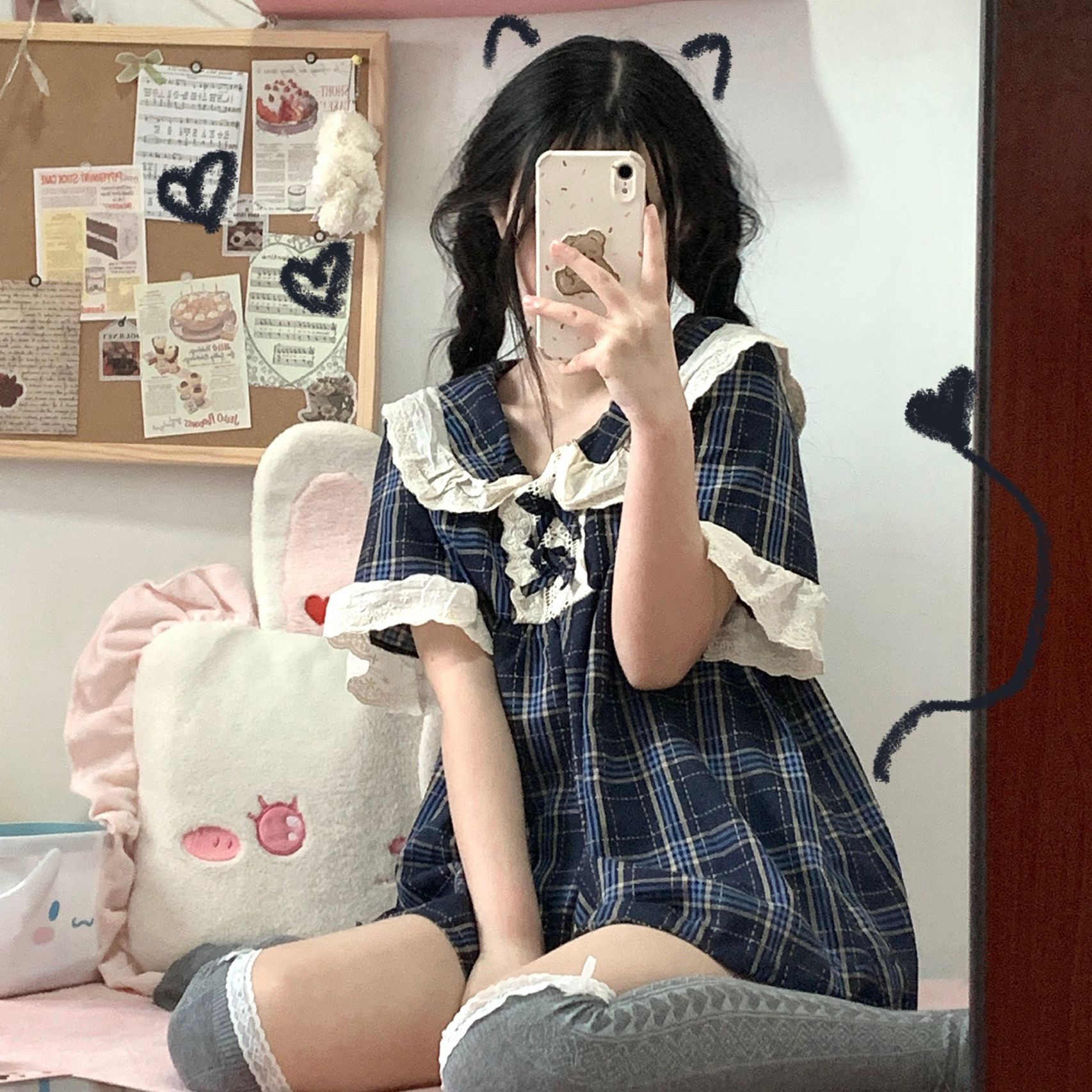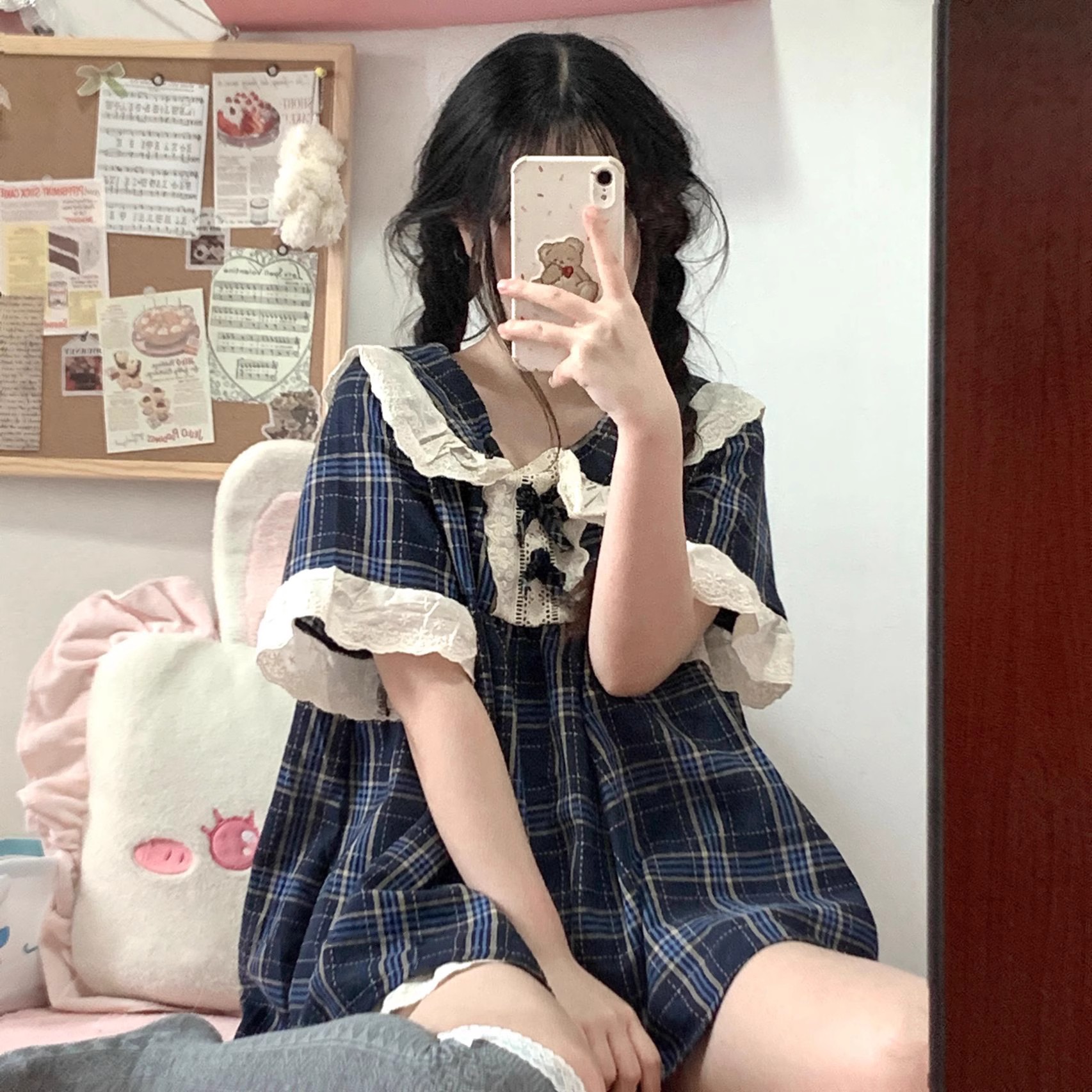 夏款日系纯欲格子短袖睡衣女少女
