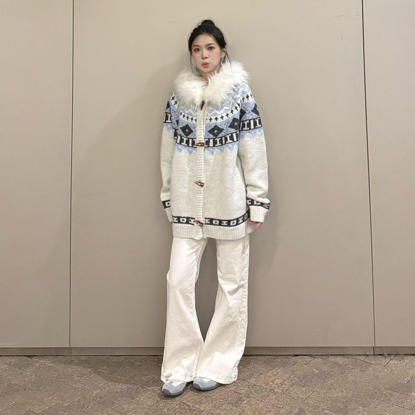 秋冬韩系穿搭慵懒风软糯减龄大毛领毛衣微喇牛仔裤时尚两件套装女