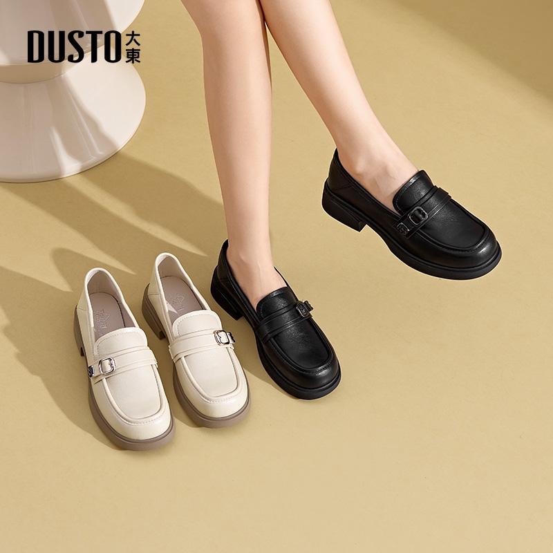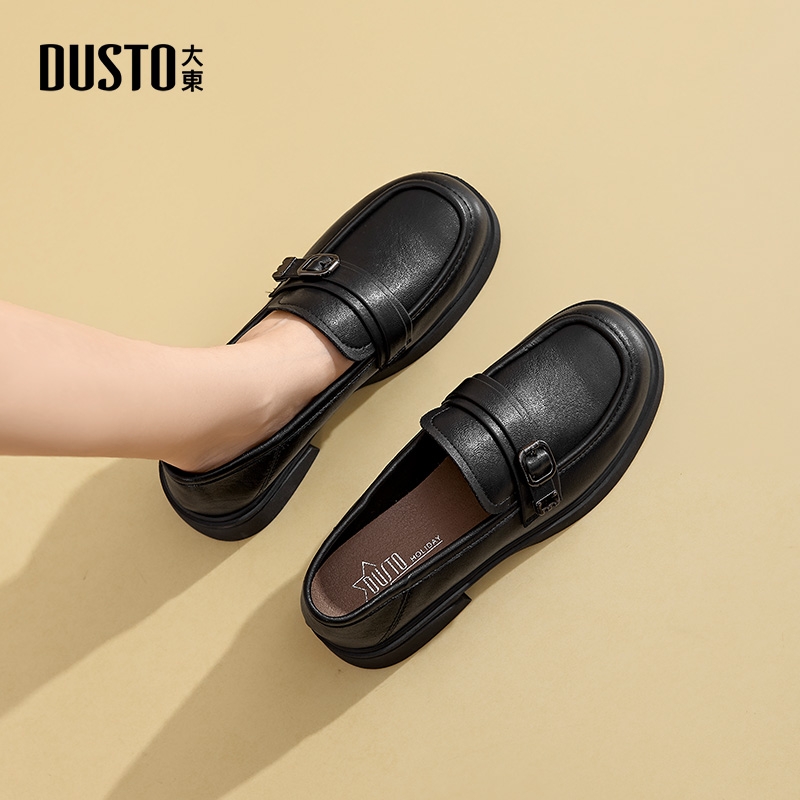 大东黑色一脚蹬乐福鞋女2025新款秋季小众低跟单鞋时尚百搭小皮鞋