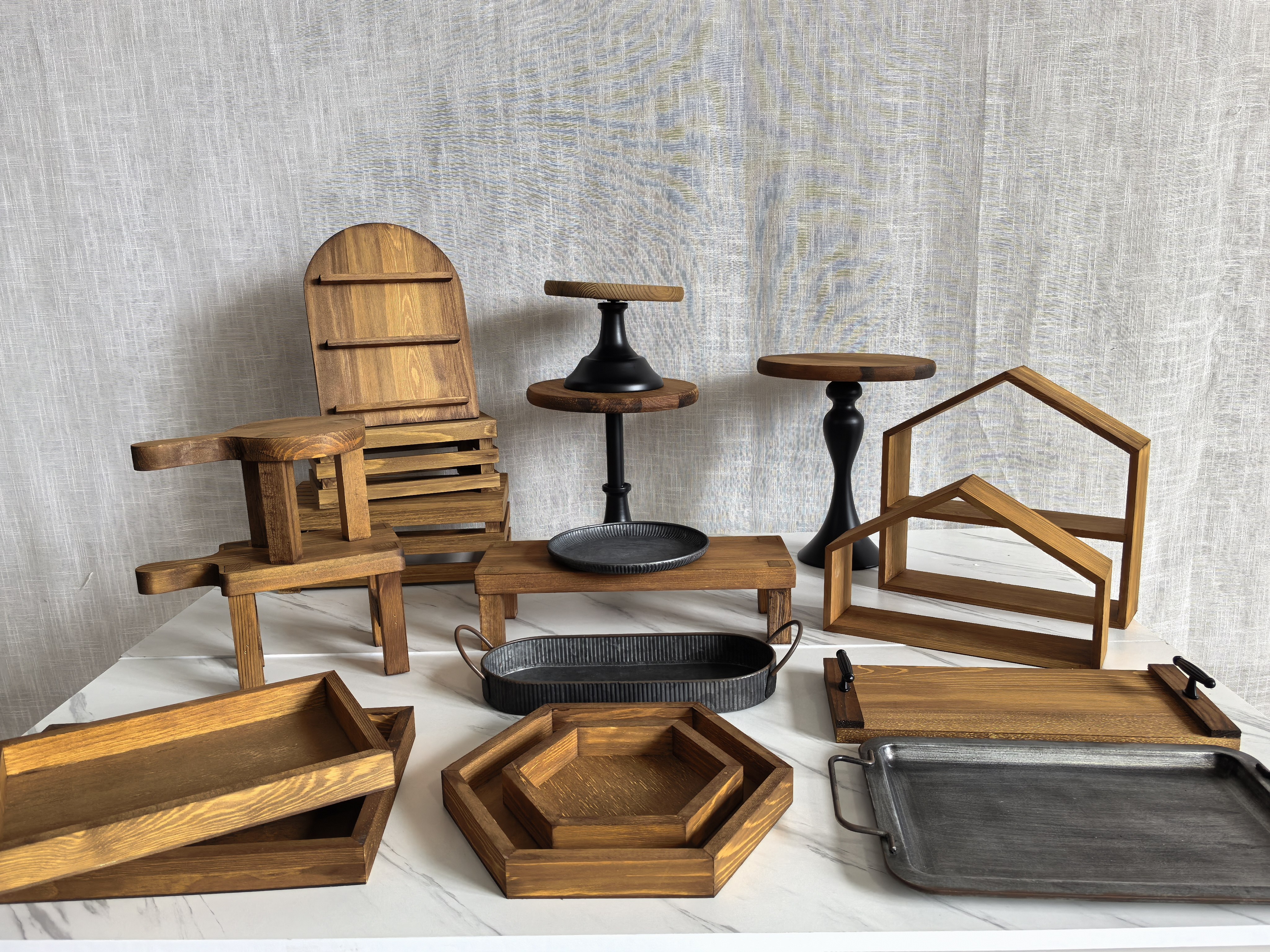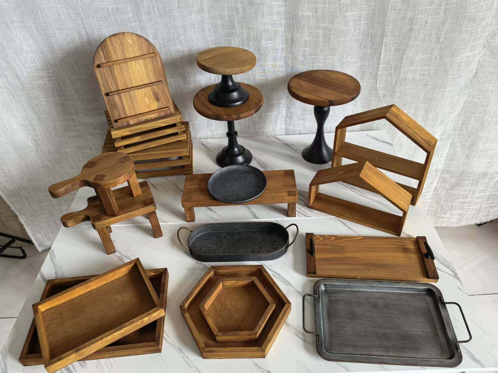 甜品台展示架户外森系婚礼点心盘原木复古托盘面包拍摄道具摆件
