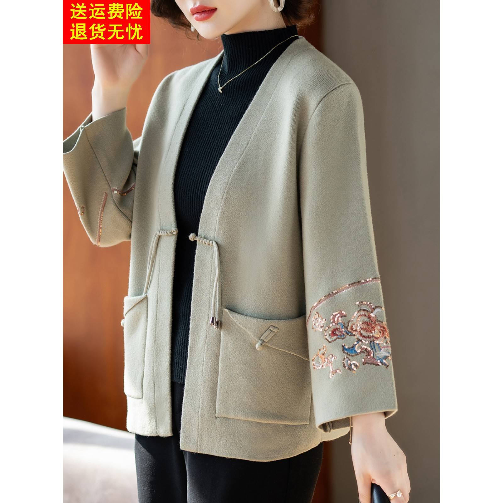 新中式妈妈春秋装毛衣开衫外套洋气2025新款时尚中老年人女上衣服