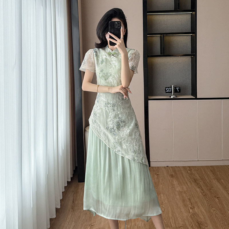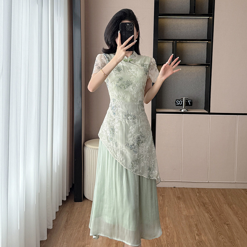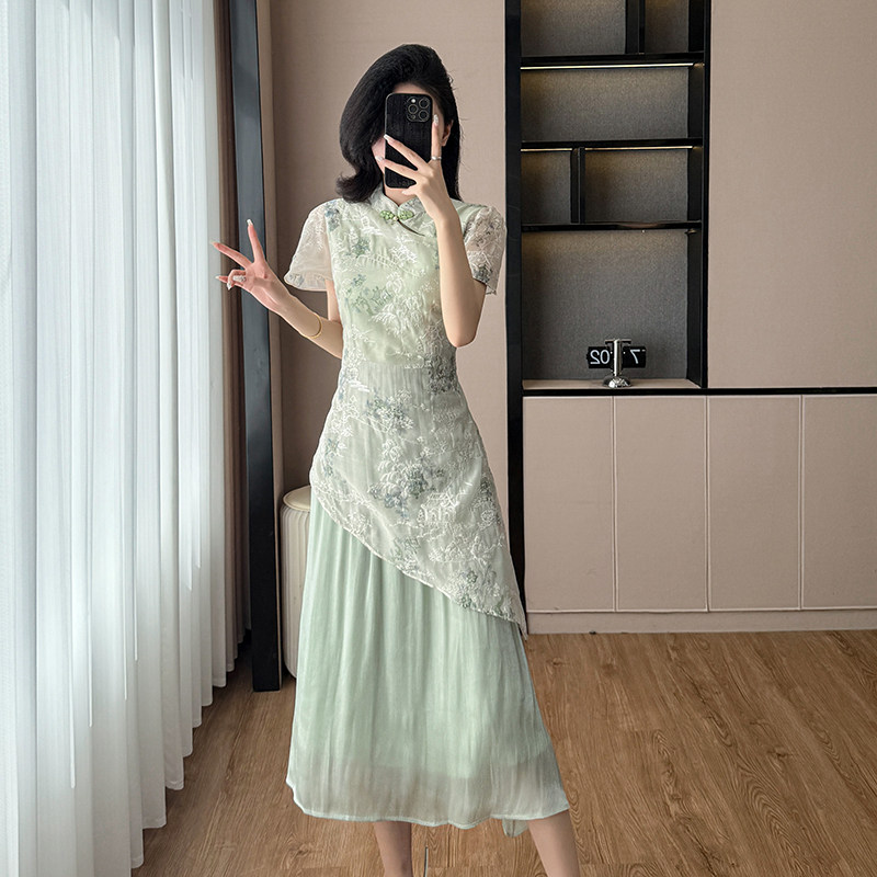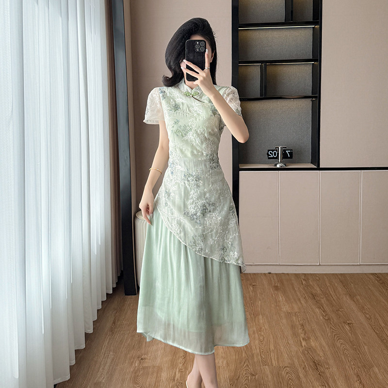 女装春装150cm加小码XXXS显高小个子新中式高端假两件连衣裙提花