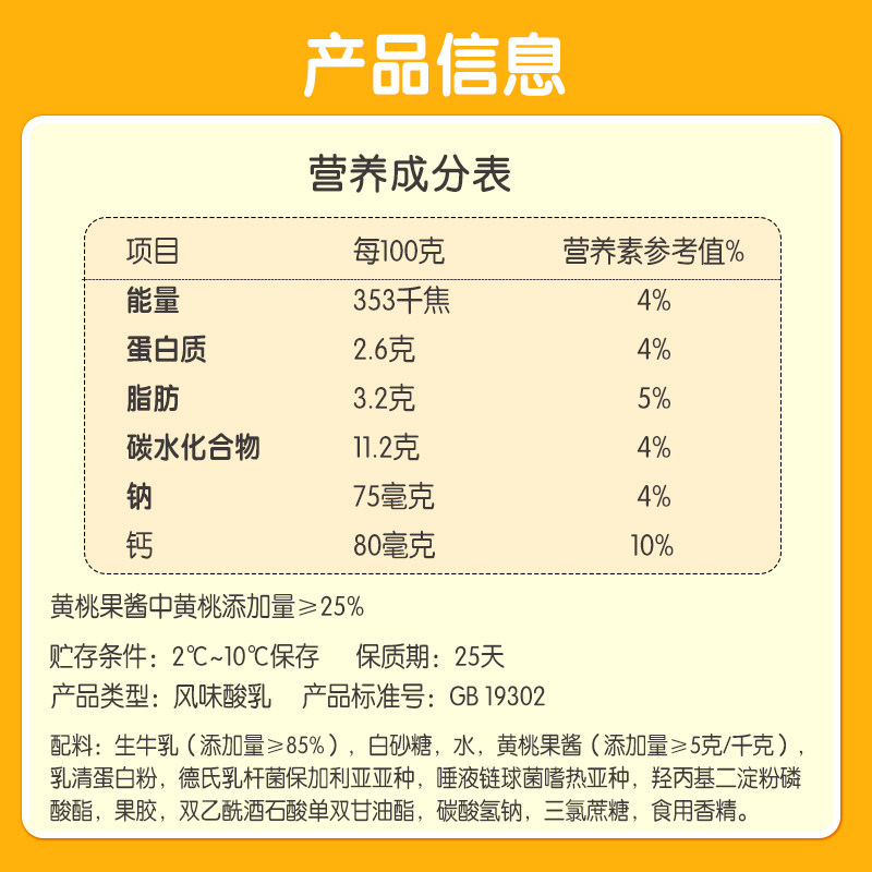君乐宝莱茜黄桃酸奶风味发酵乳