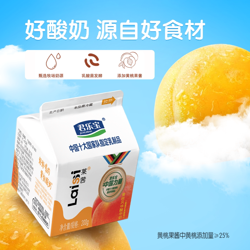 君乐宝莱茜黄桃酸奶200g整箱益生菌营养早餐儿童学生风味发酵乳品