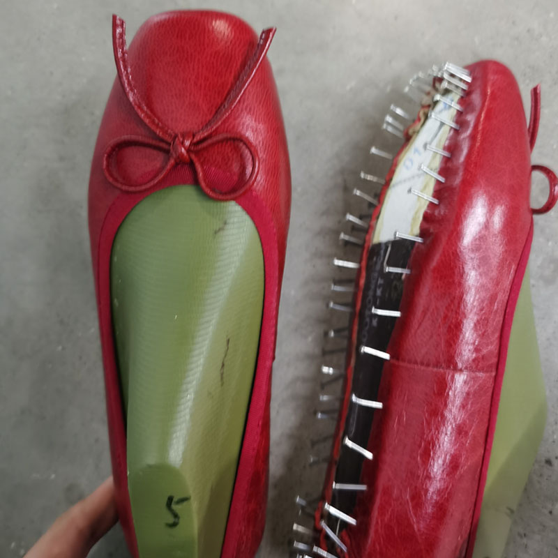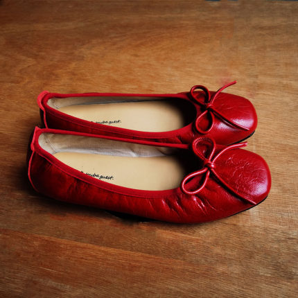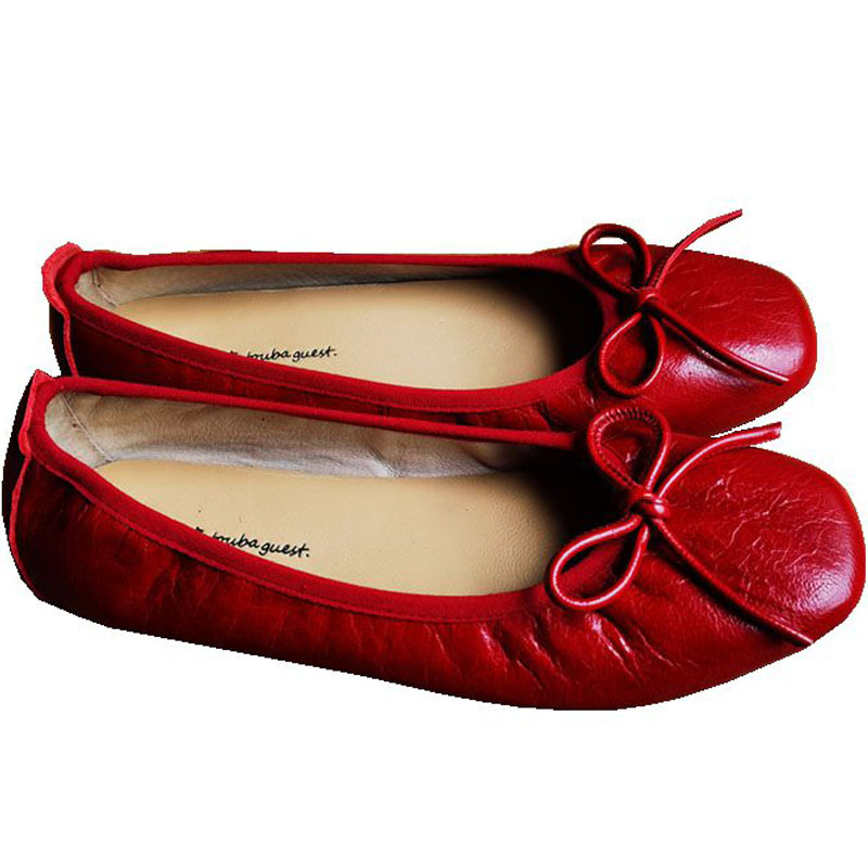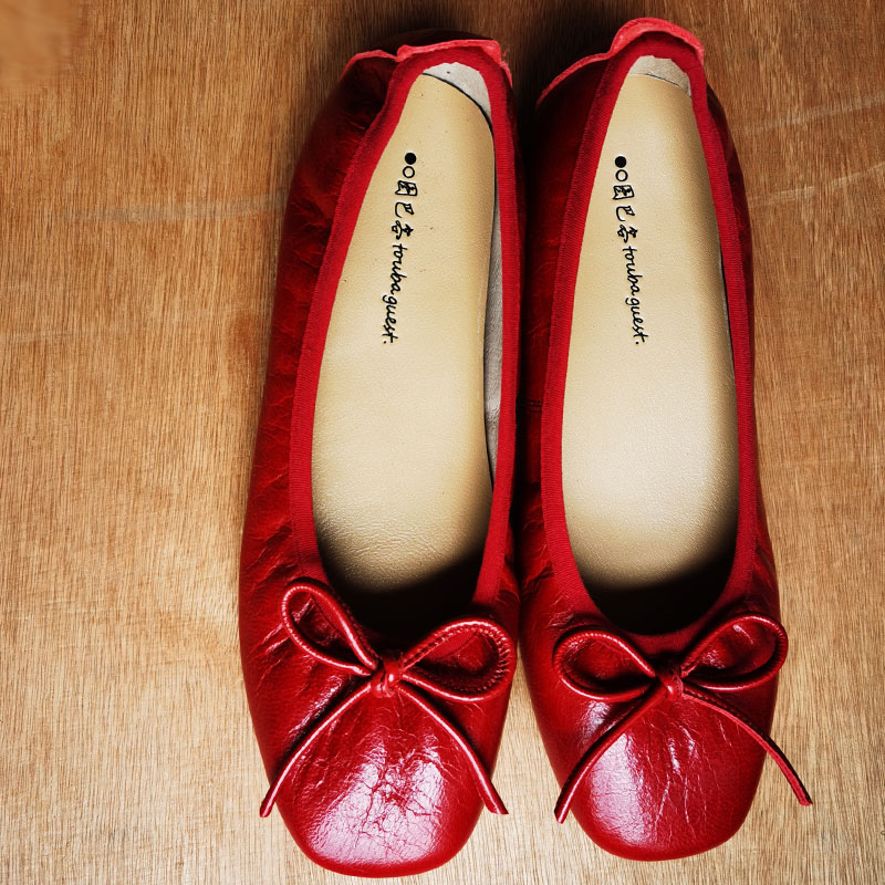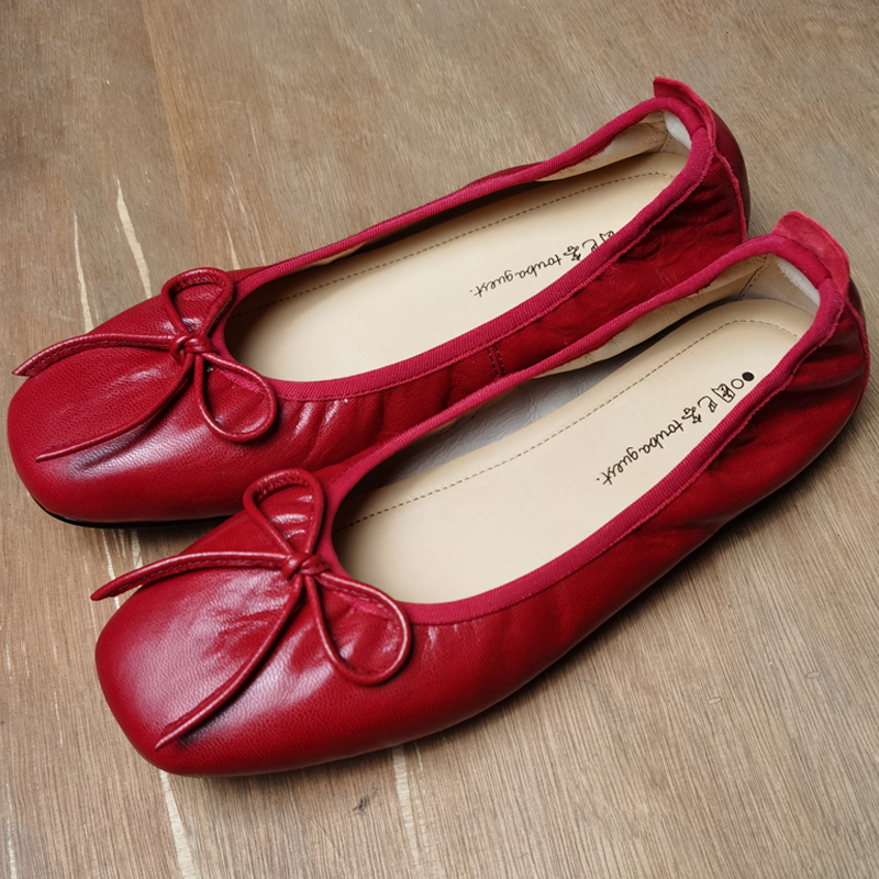方头蝴蝶结复古酒红色芭蕾舞鞋
