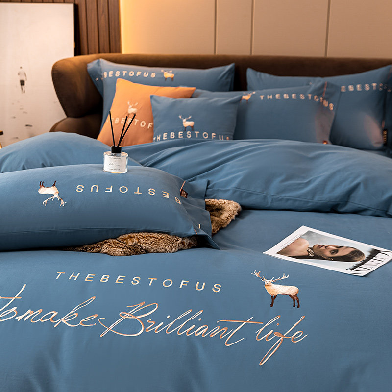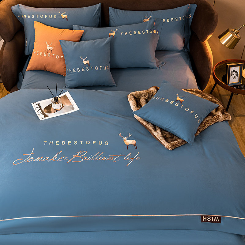 高端轻奢风纯棉磨毛四件套秋冬全棉加厚保暖床单被套床笠床上用品