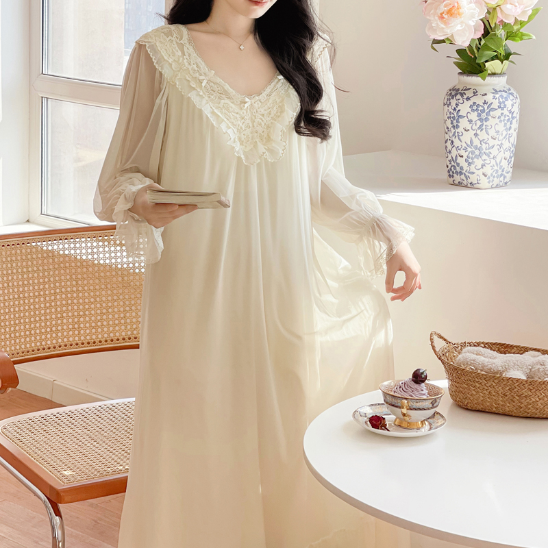 BIEN带胸垫睡裙女春秋季法式宫廷公主风莫代尔家居服可外穿高级感