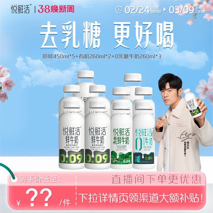 【直降】悦鲜活原味450ml*5+有机260ml*2+0乳糖牛奶260ml*3