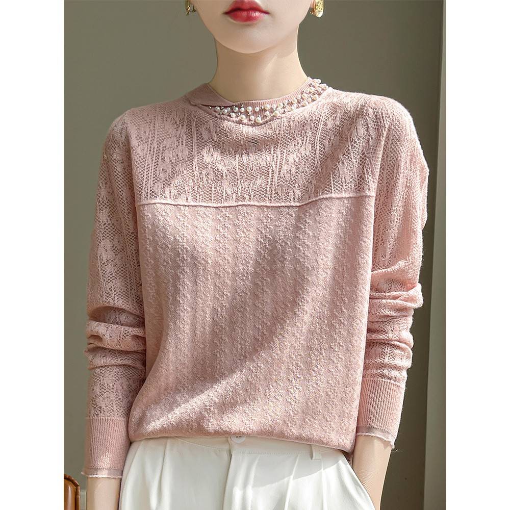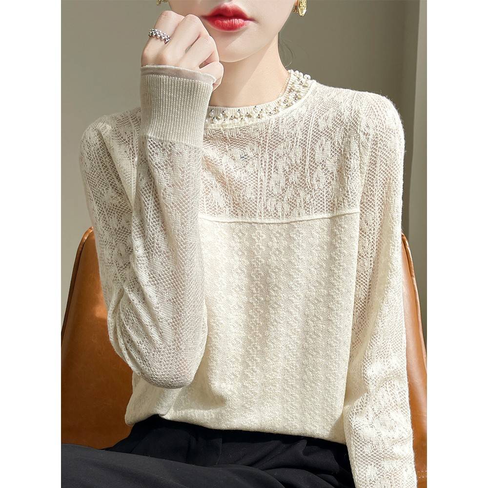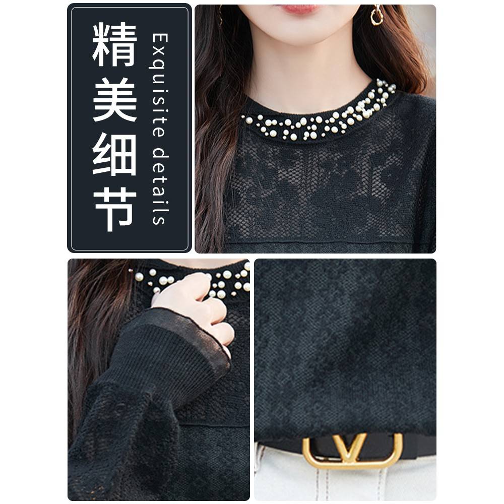 2025新款蕾丝钉珠提花针织打底衫女春秋内搭洋气大码女装秋冬毛衣