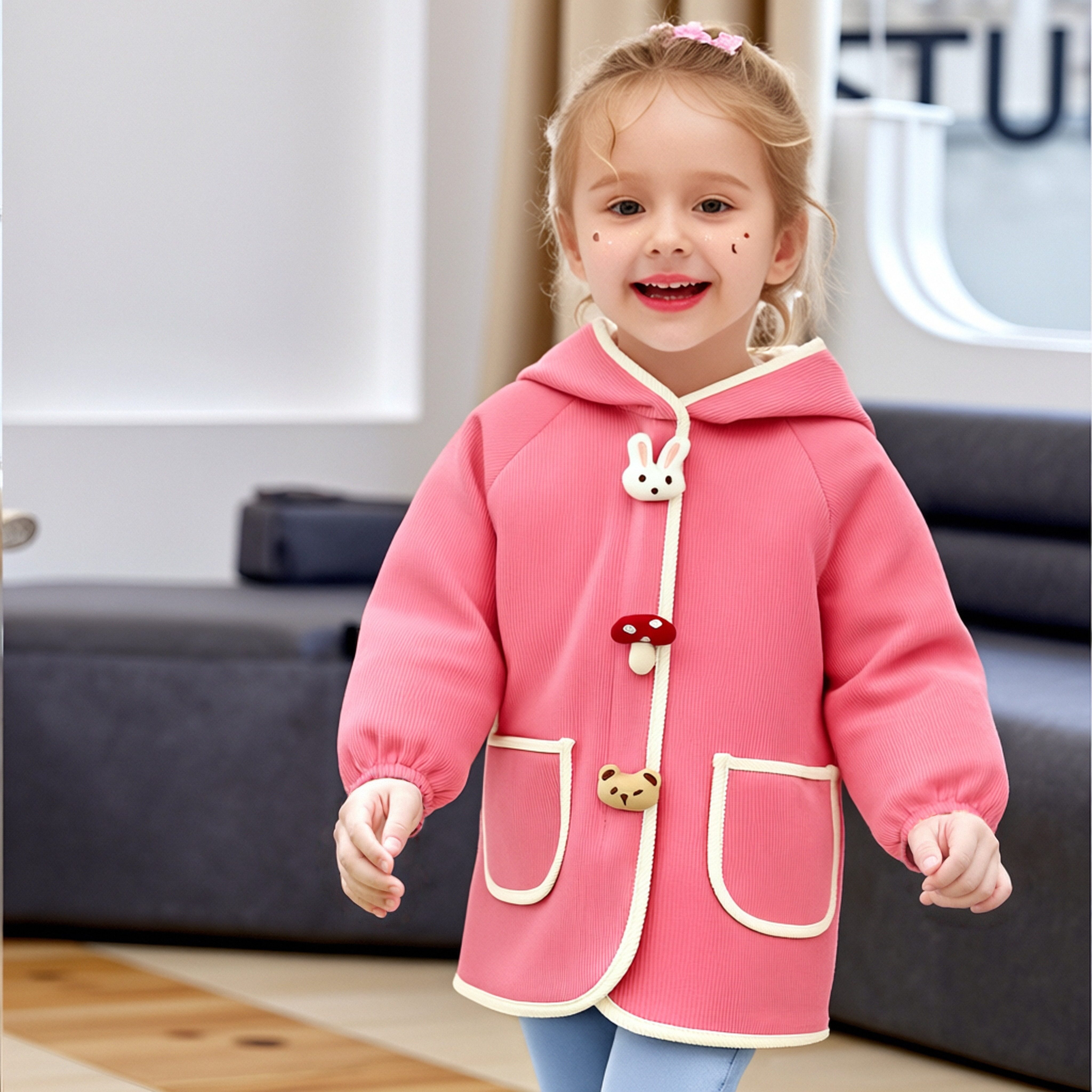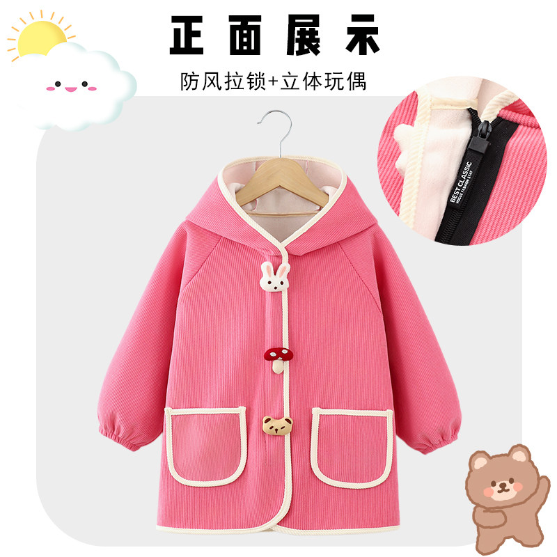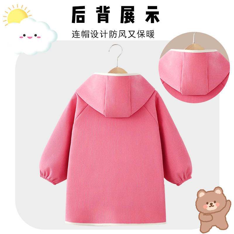 女童羽绒服罩衣儿童灯芯绒外穿拉链新年红外套加绒中大童防脏护衣