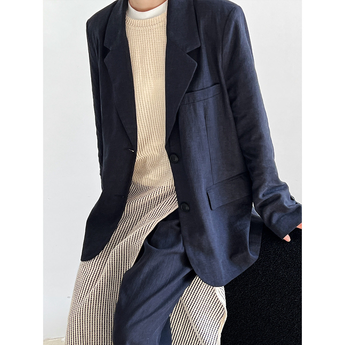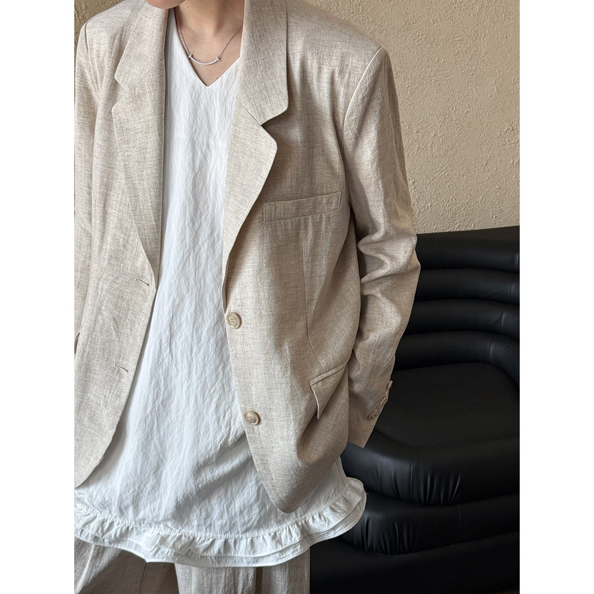 高定棉麻系列 重磅休闲老钱风西装套装松弛感外套上衣+棉麻裤子春