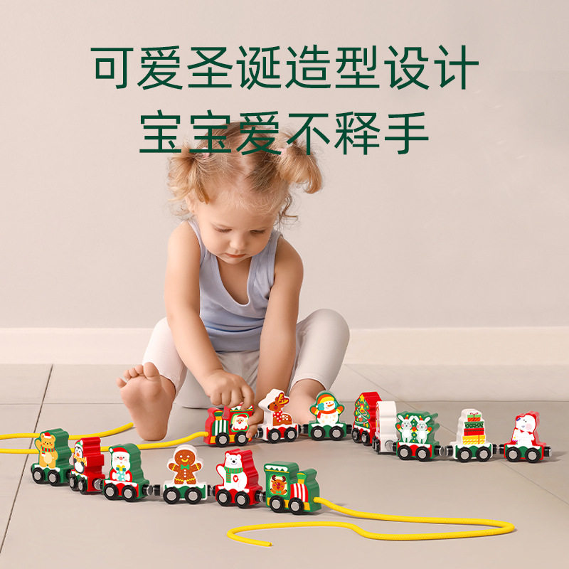 圣诞节主题礼物磁性拖拉小火车 拼搭组合手眼协调 木制轨道玩具车