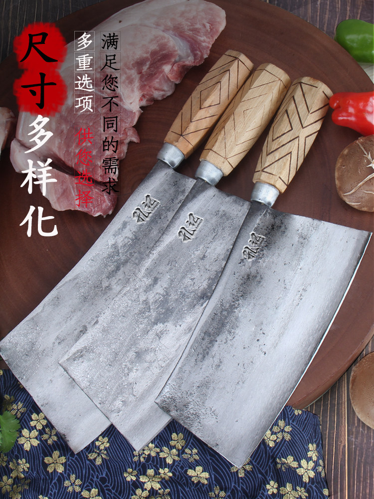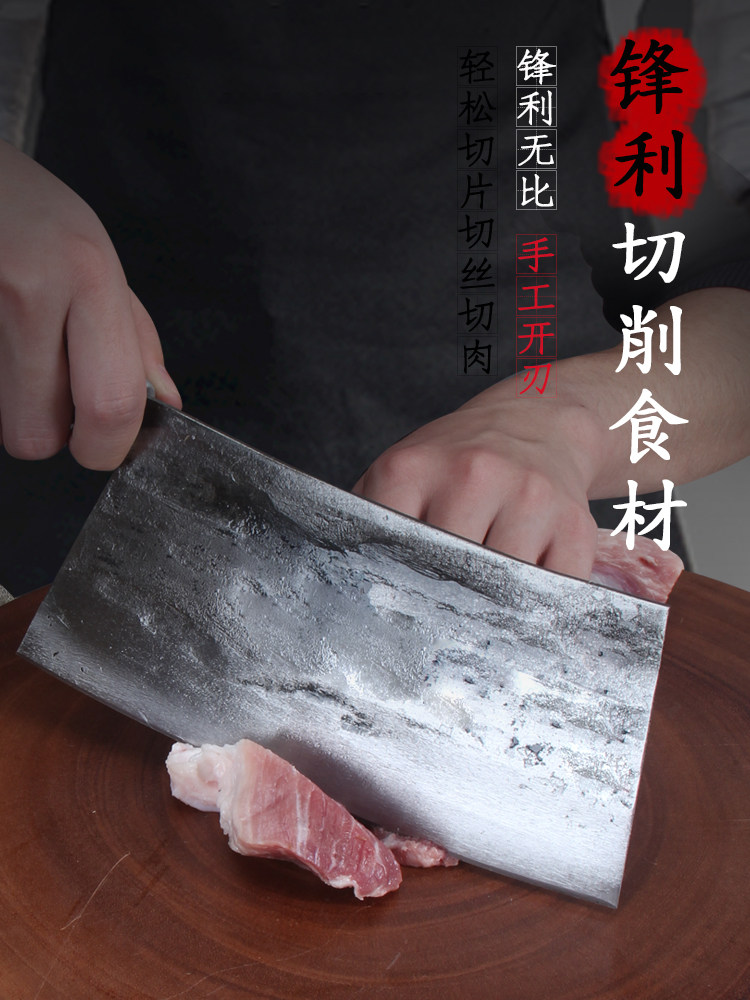 手工锻打刀老式铁菜刀家用锰钢厨师专用锋利斩切肉菜切片刀具厨房