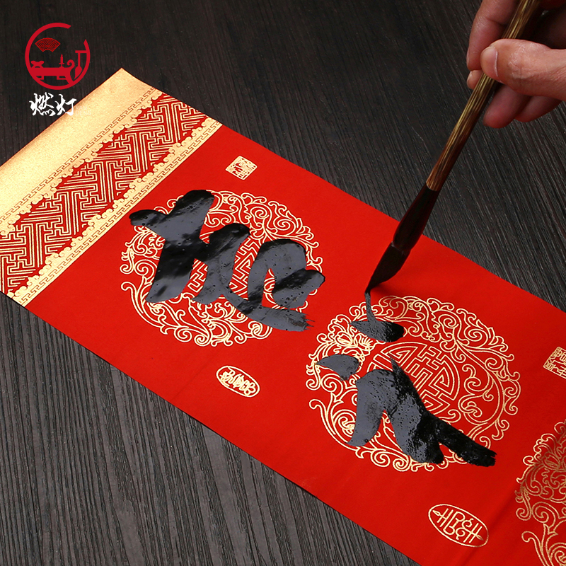 燃灯新款祥瑞中国风系列高档蜡染描金对联专用纸加厚空白手写春联纸2026年春节过年自写万年红宣纸书法专用