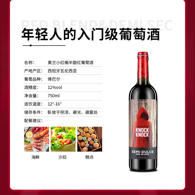 奥兰小红帽半甜干红葡萄酒西班牙