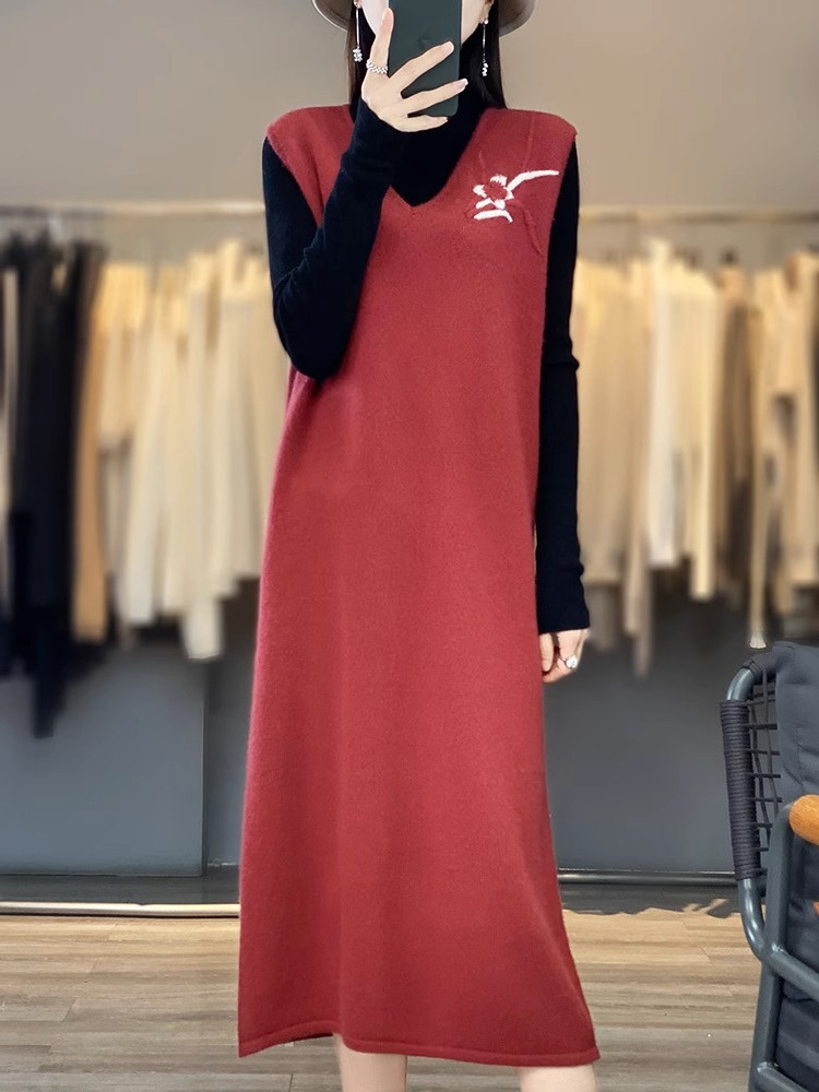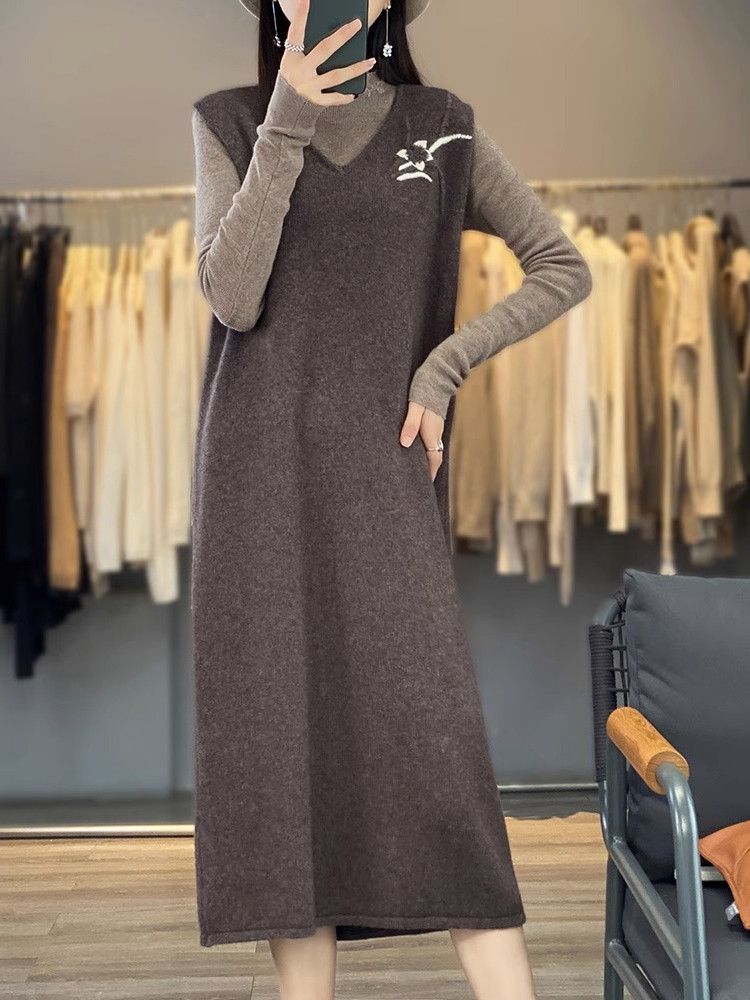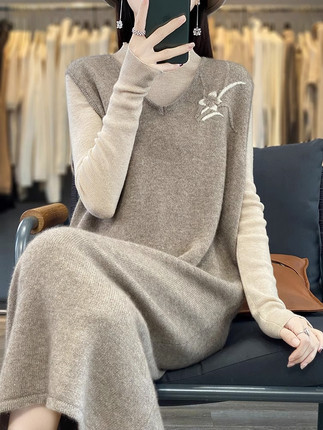 正品捡漏专柜款羊毛针织背心连衣裙女春秋外穿过膝无袖马甲打底裙