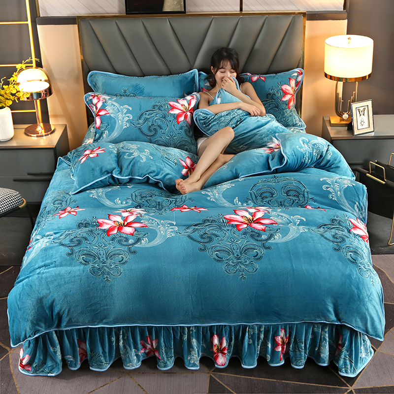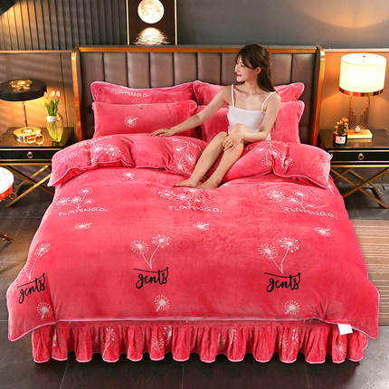 加厚牛奶绒被套冬季珊瑚绒被罩加绒1.8四件套规格