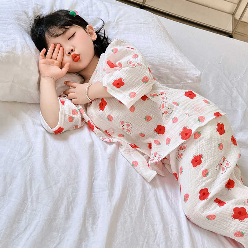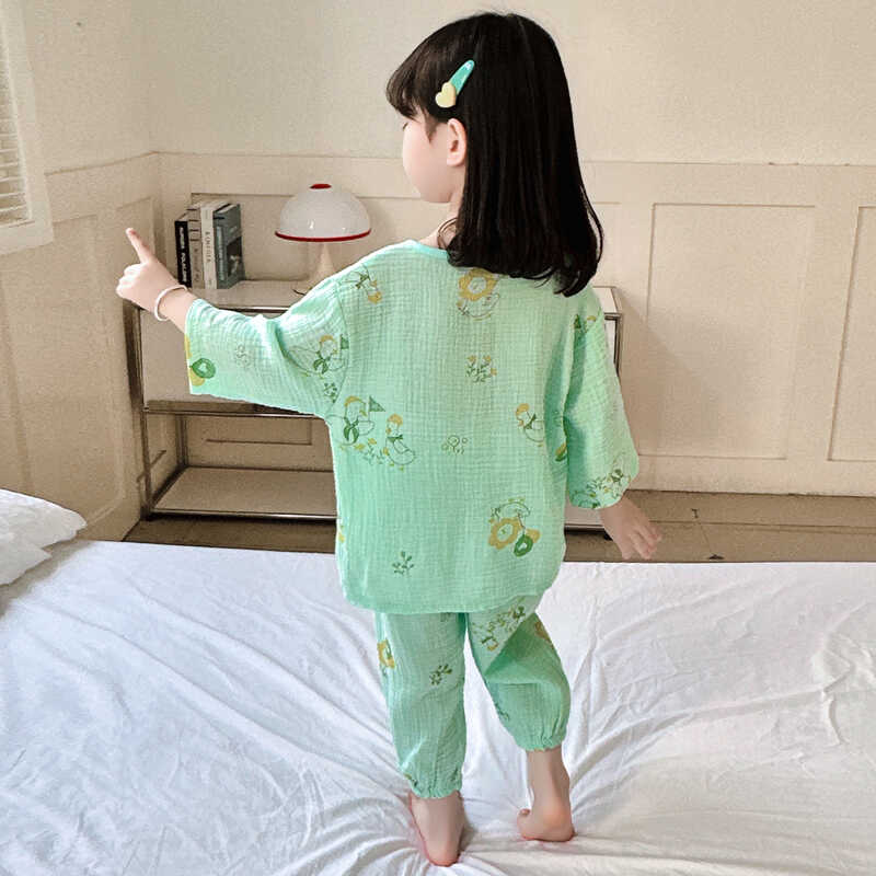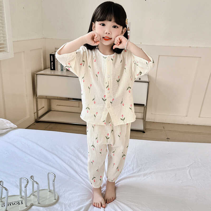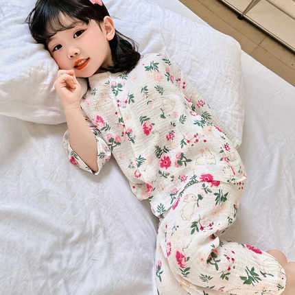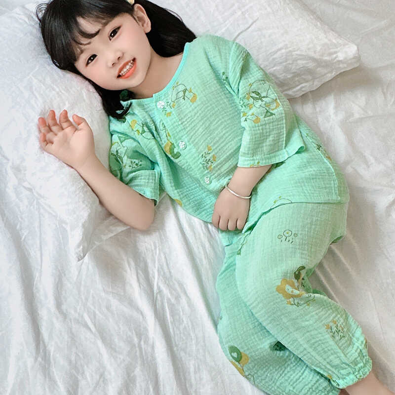 女童夏季薄款睡衣套装纯棉七分袖小花中小童家居服可爱宝宝空调服