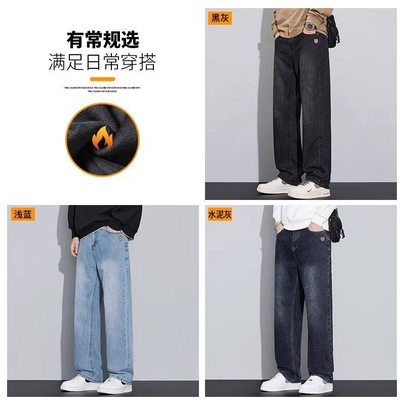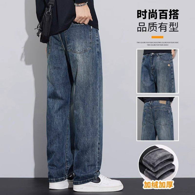 Yishion以纯官方时尚正品秋冬季新款加绒保暖牛仔裤男装加厚直筒