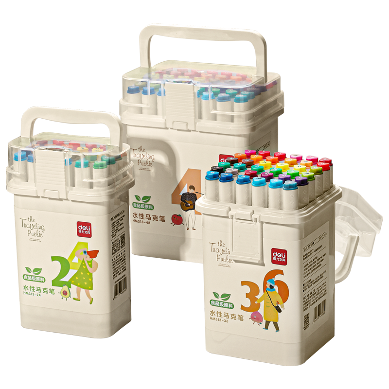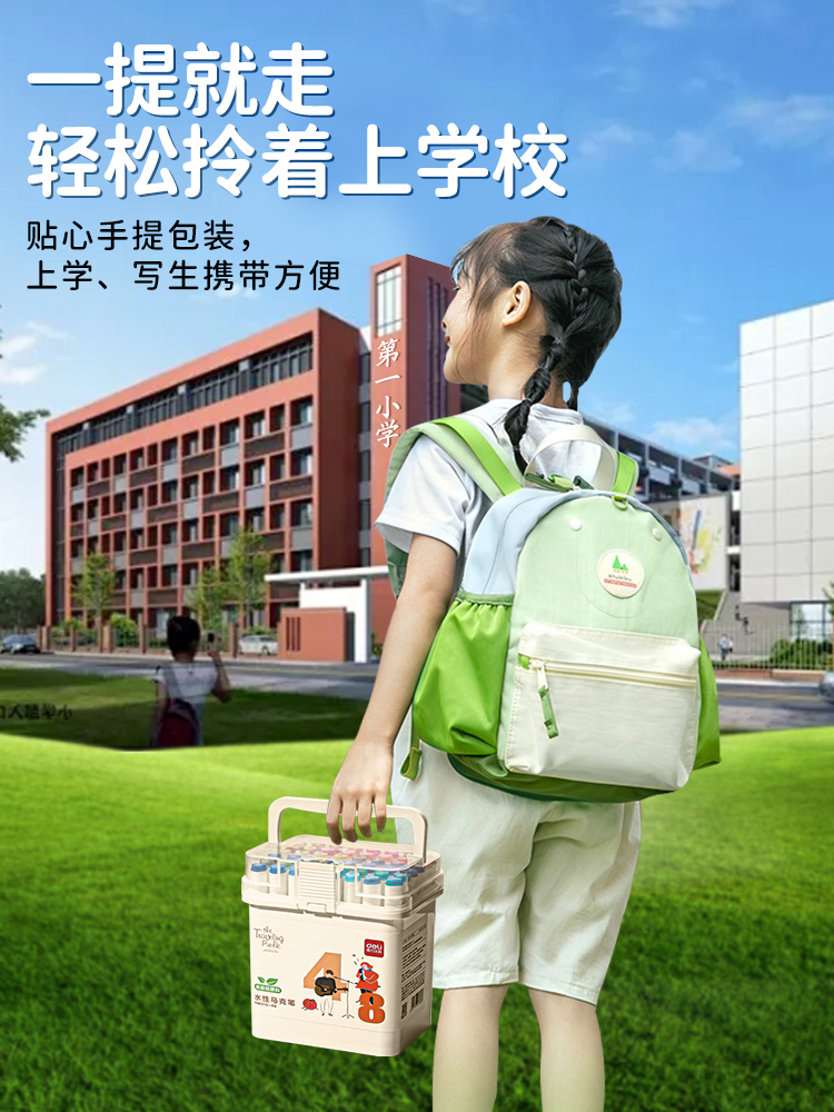得力马克笔水彩笔儿童可水洗无毒小学生幼儿园专用丙烯油性彩笔软头画笔24色4848色不透色水性三角颜色专业