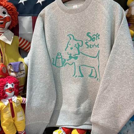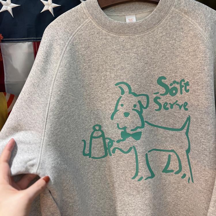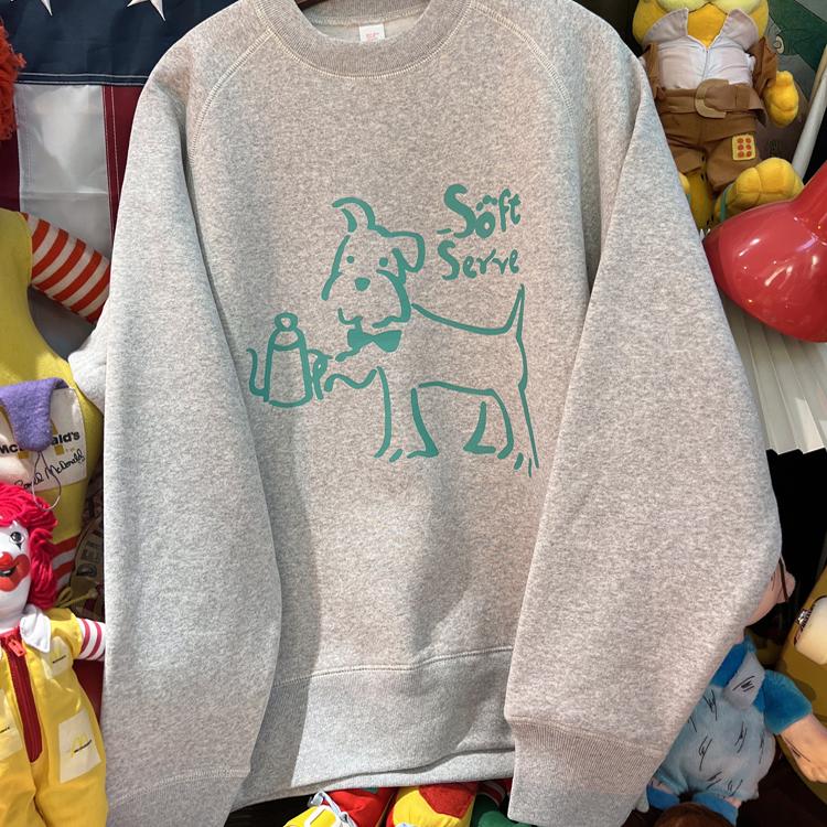 美式复古 vintage 可爱小狗 插肩圆领套头落肩加绒卫衣男女情侣