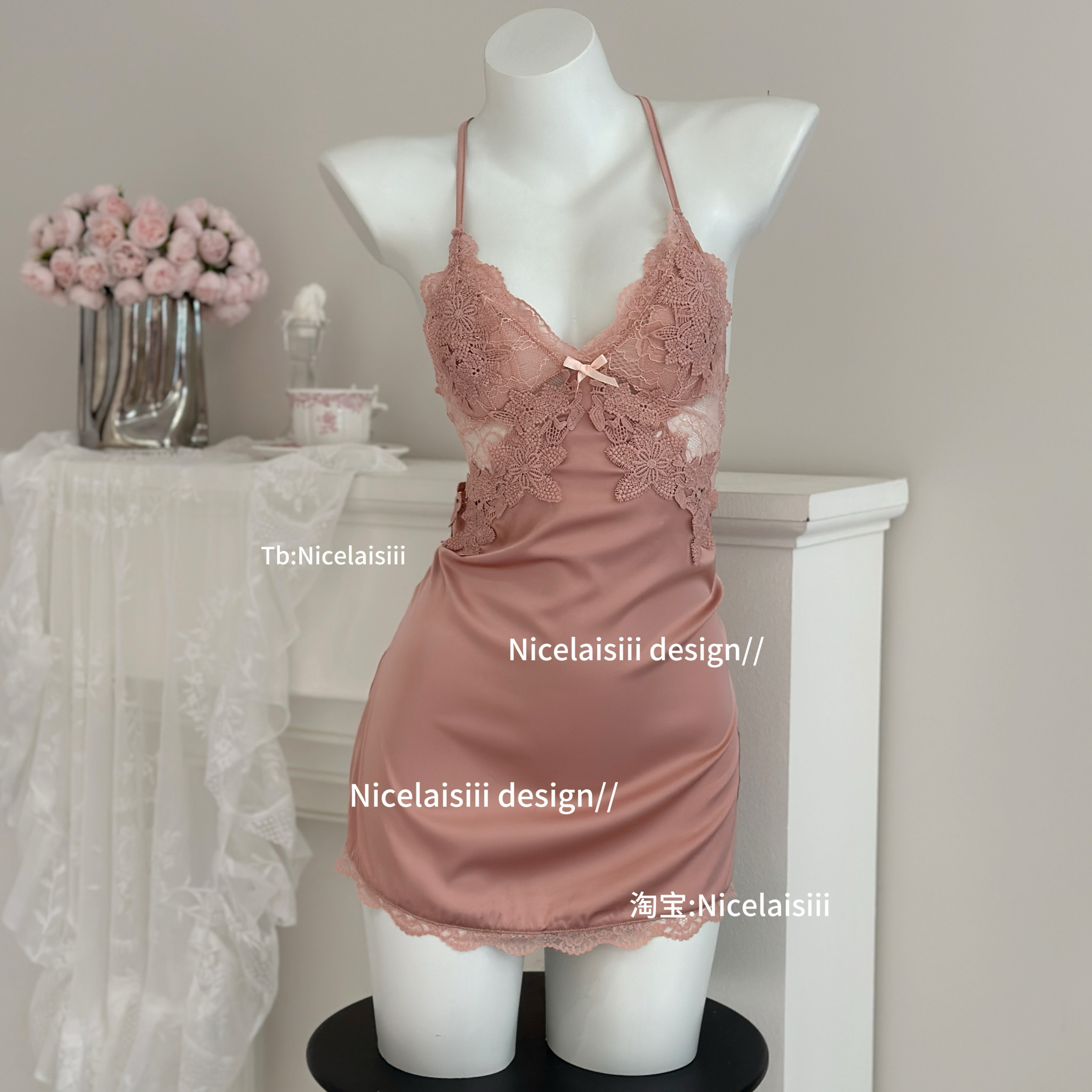 缎面蕾丝冰丝睡裙纯欲风性感