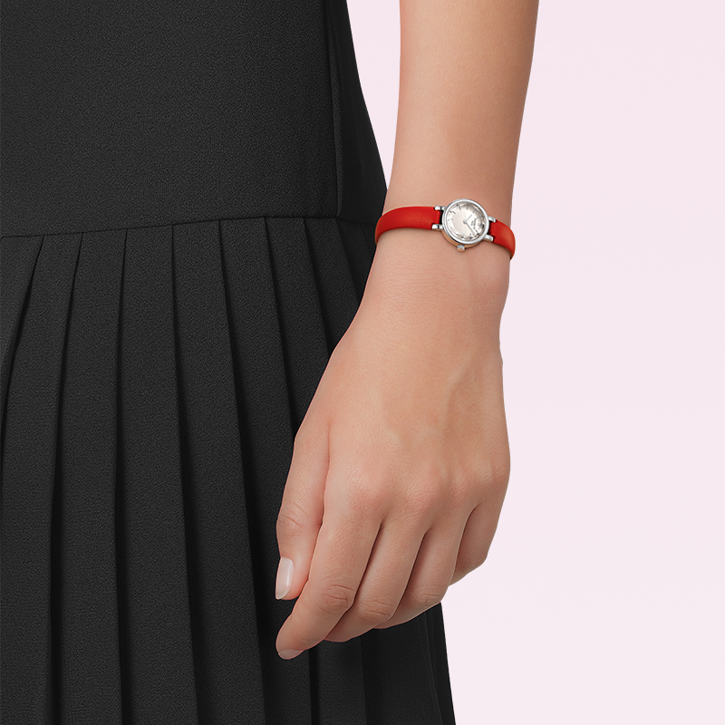 Tissot天梭小可爱乐爱系列红色皮带石英女表手表