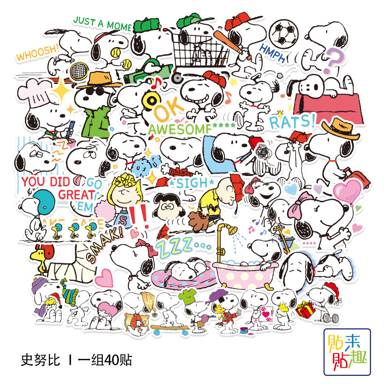 40张动漫卡通史努比小贴纸个性可爱 行李箱贴滑板吉他机车头盔贴