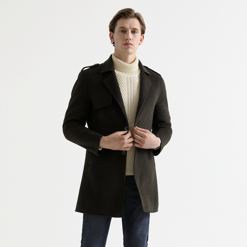 柒牌奥莱男装清仓秋冬毛呢风衣时尚青年风大衣修身保暖外套
