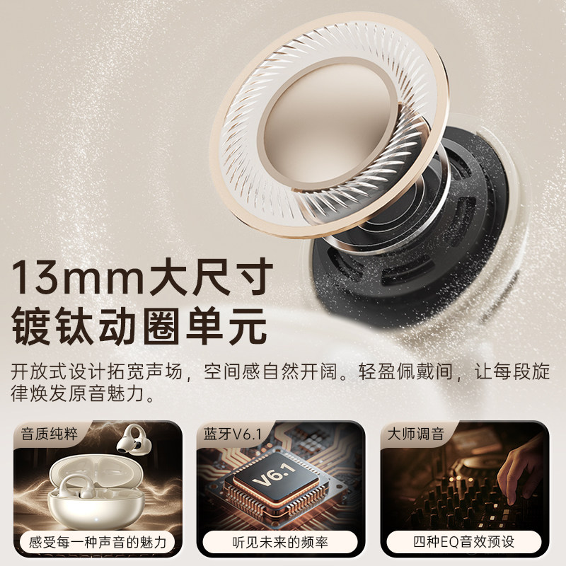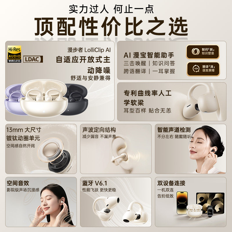 漫步者LolliClip AI耳夹式蓝牙耳机不入耳开放式降噪运动跑步游戏