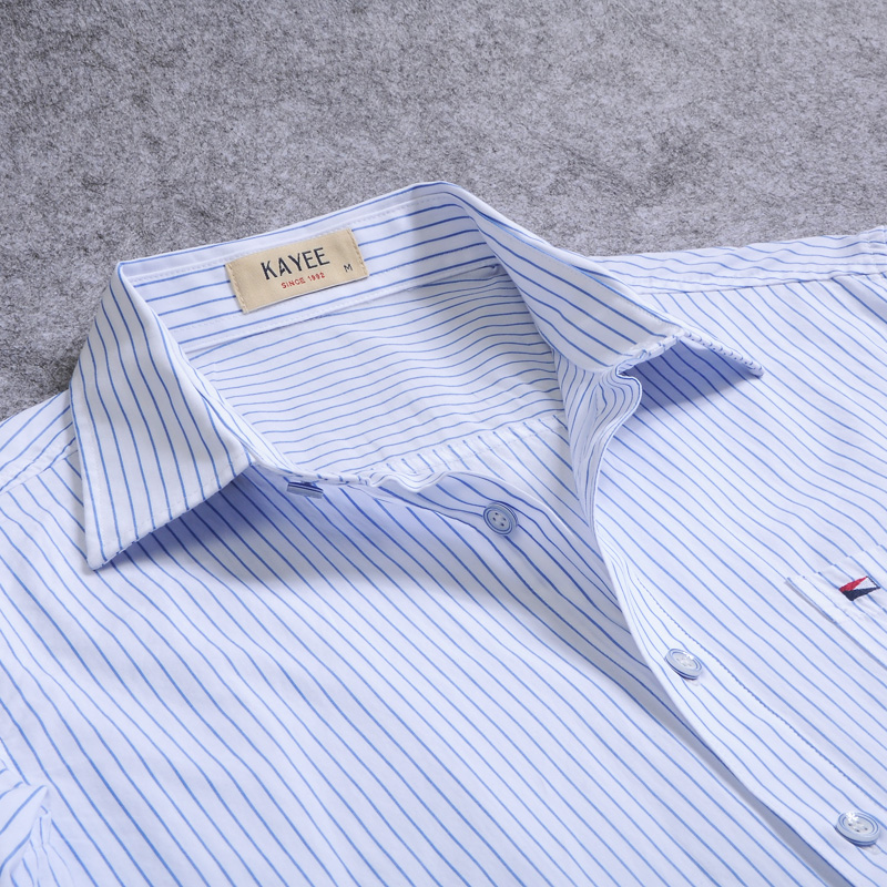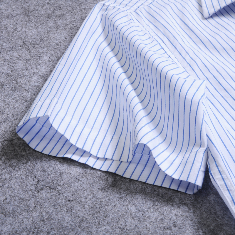 嘉意精梳纯棉短袖蓝色条纹衬衫