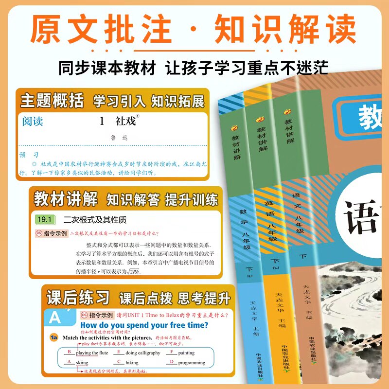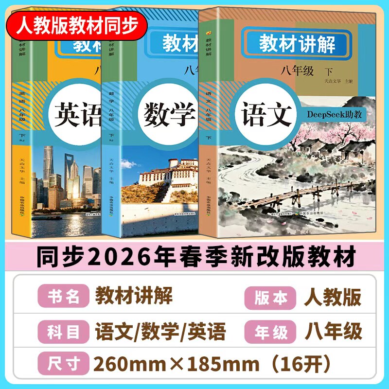 2026新版初中生教材讲解全解七年级八年级语文数学英语预习教材书同步课本原文全套人教版78初一二教辅资料上下册学霸课堂笔记解读
