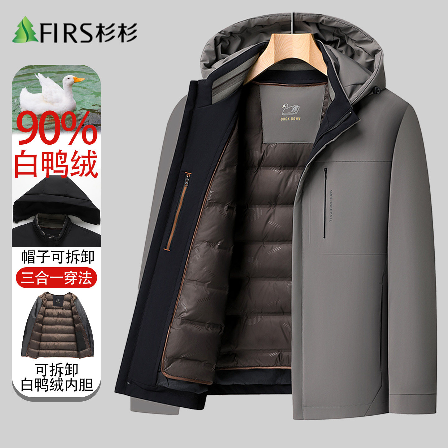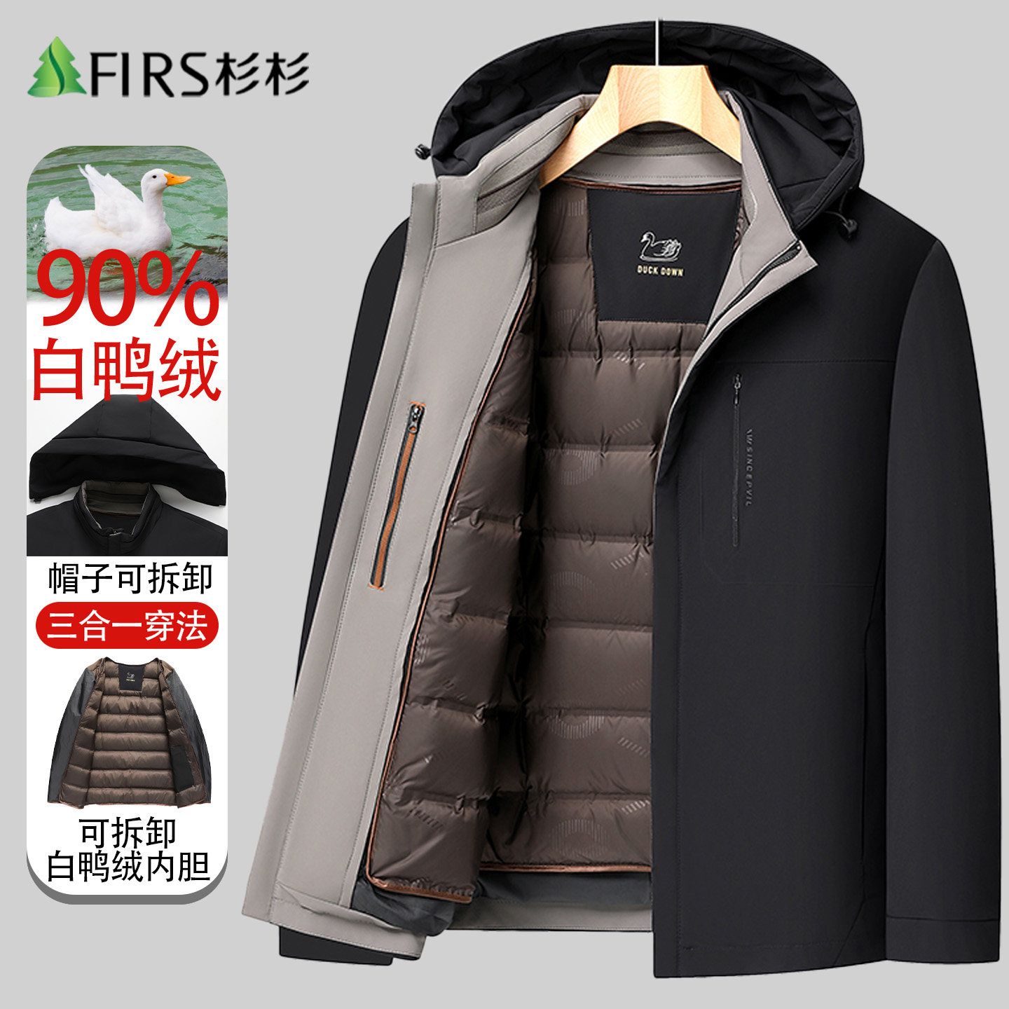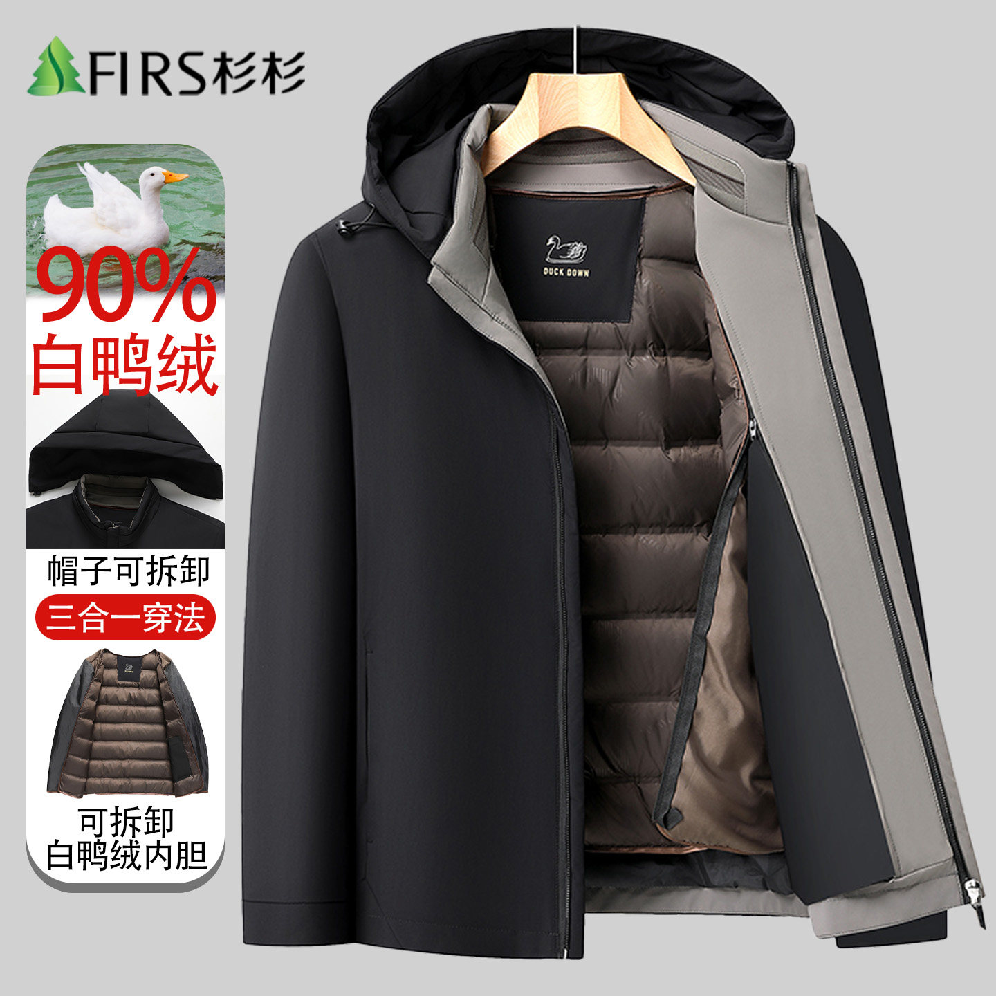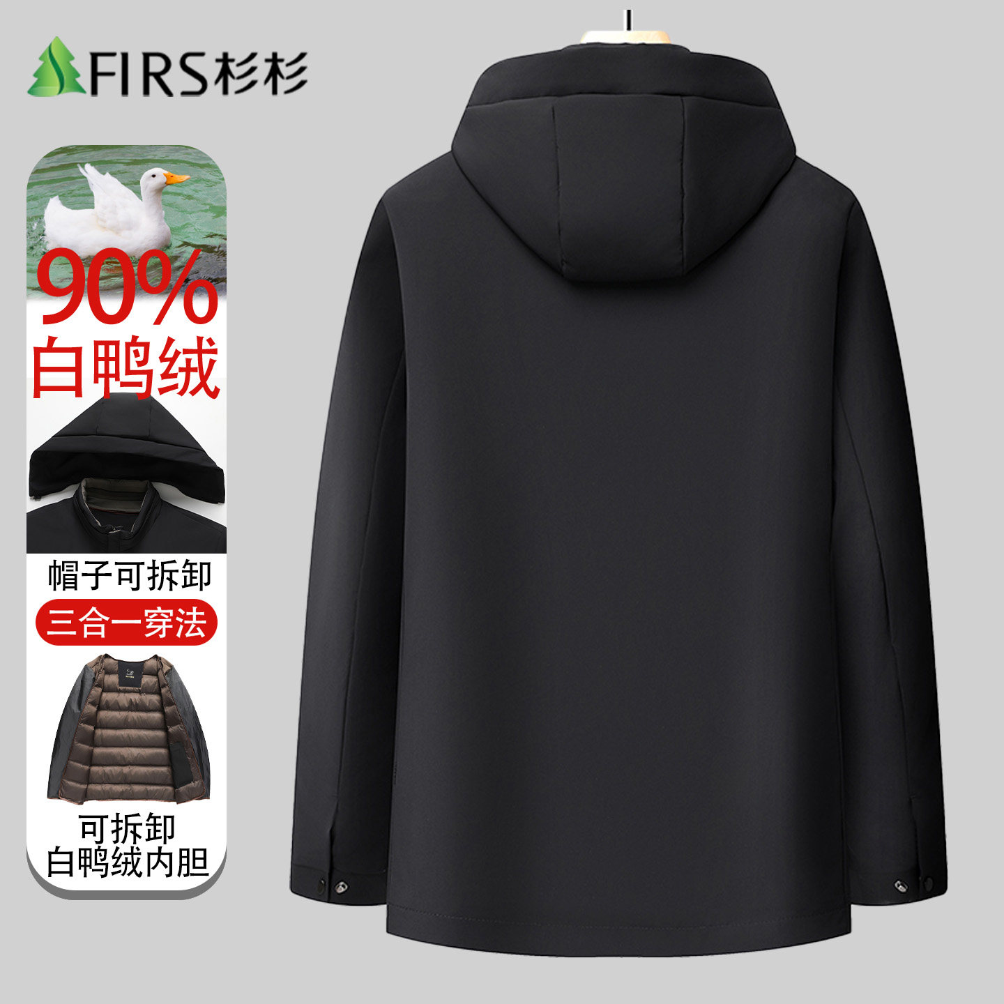 【脱卸内胆】杉杉羽绒服男爸爸装中老年加厚冬季新款保暖休闲外套