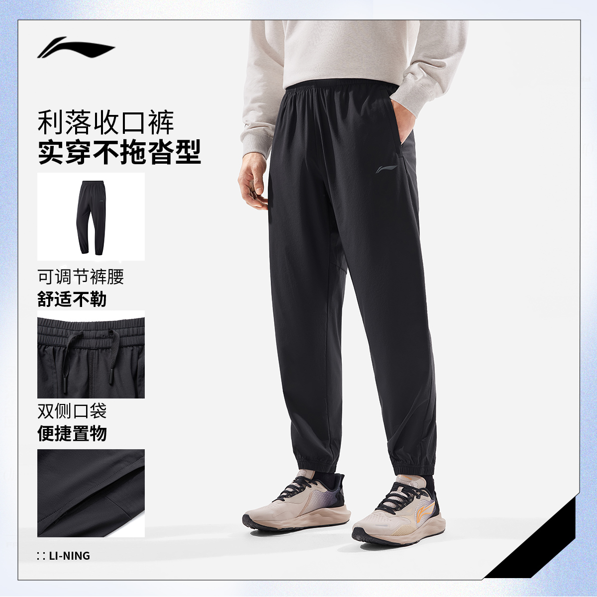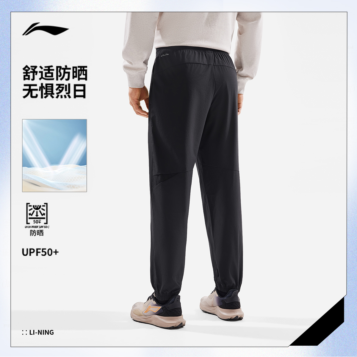 李宁运动裤2025新款男士休闲黑色裤子凉感防晒裤束脚梭织运动长裤