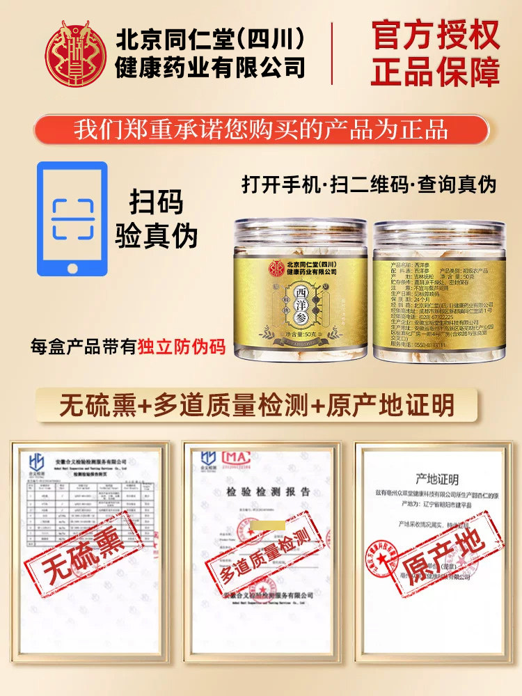 北京同仁堂西洋参500g特级长白山