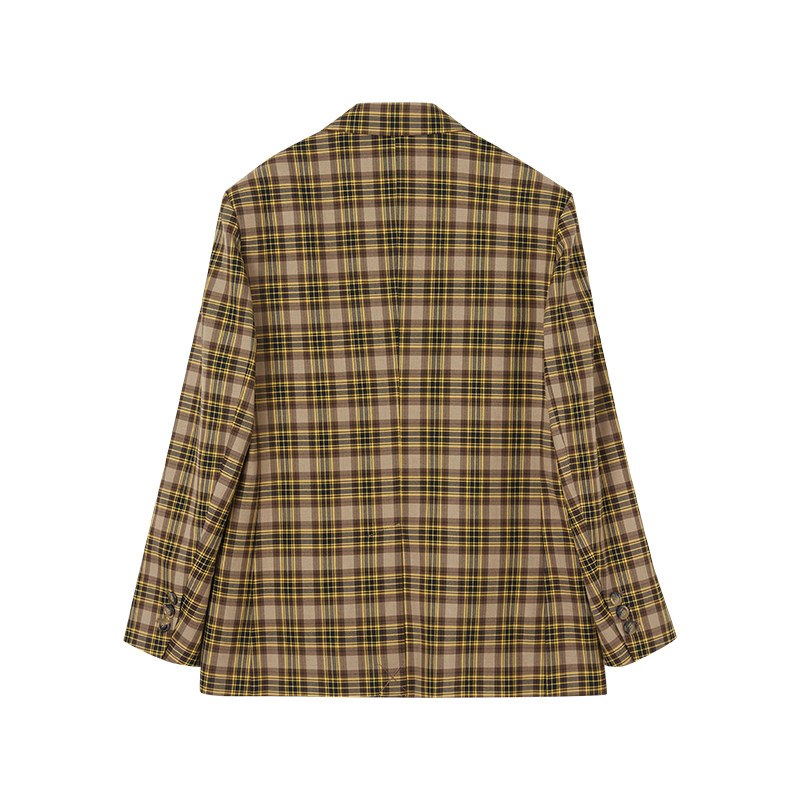 indicia西装格纹外套长袖格子女