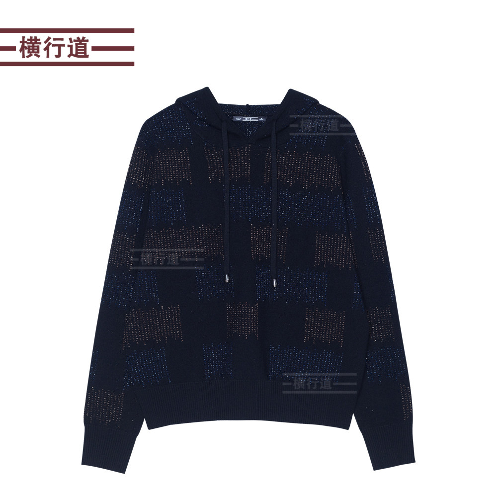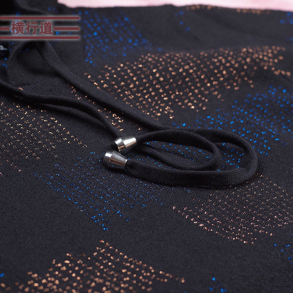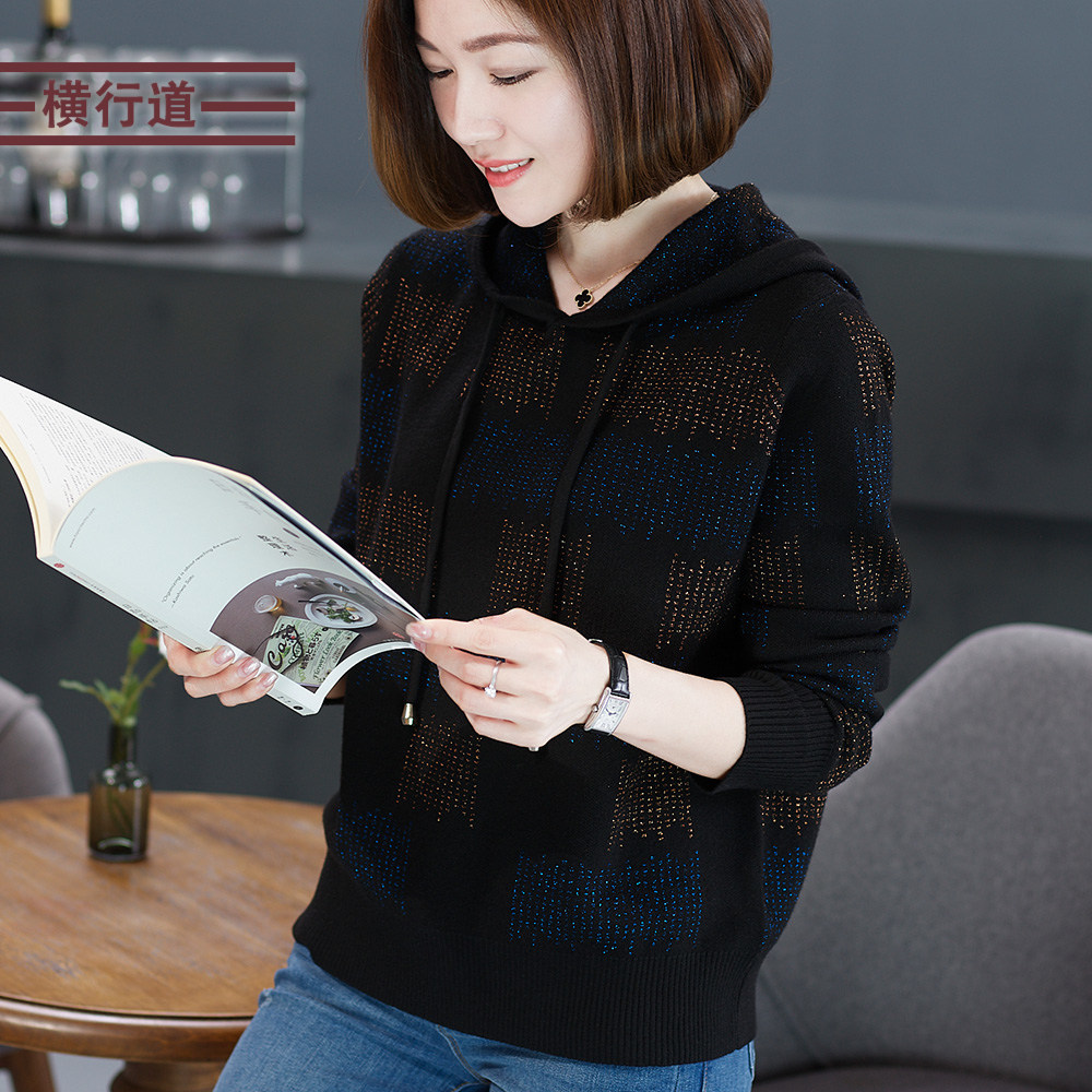 2025冬装连帽黑色亮丝针织衫休闲宽松大码女装上衣纯色打底衫长袖