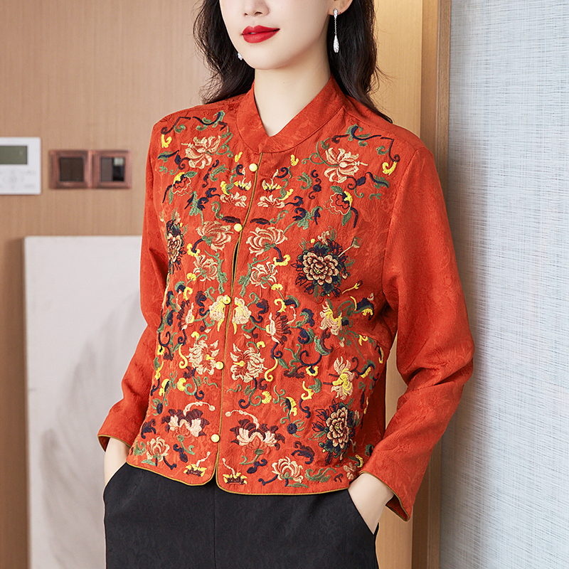 秋季中国风大片刺绣花香云纱短外套上衣女 复古休闲小外套带衬里