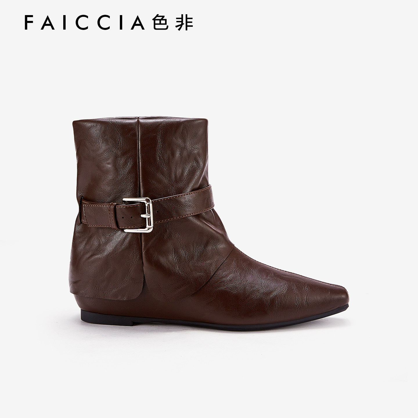 色非商场同款女靴皮带扣短靴子