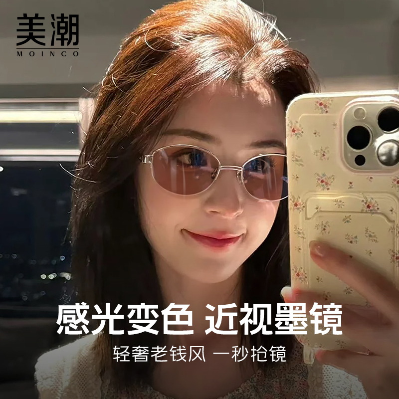 感光变色防蓝光辐射近视眼镜女可配度数纯钛镜框老钱风太阳镜墨镜