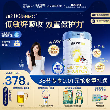 【新品】佳贝艾特幼儿羊奶粉 铂晶悦白3段806g*1罐 12-36个月