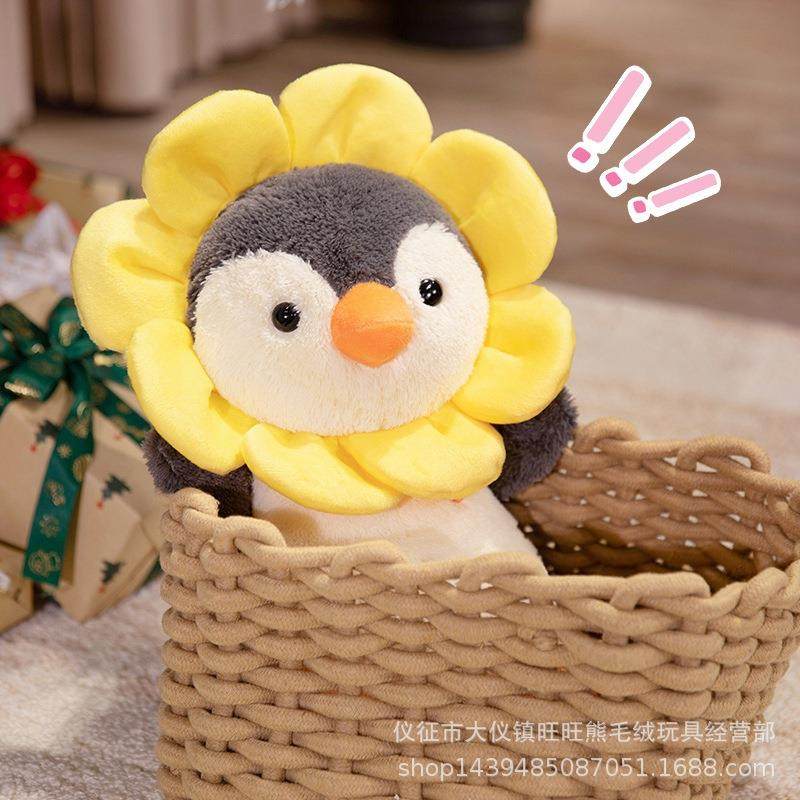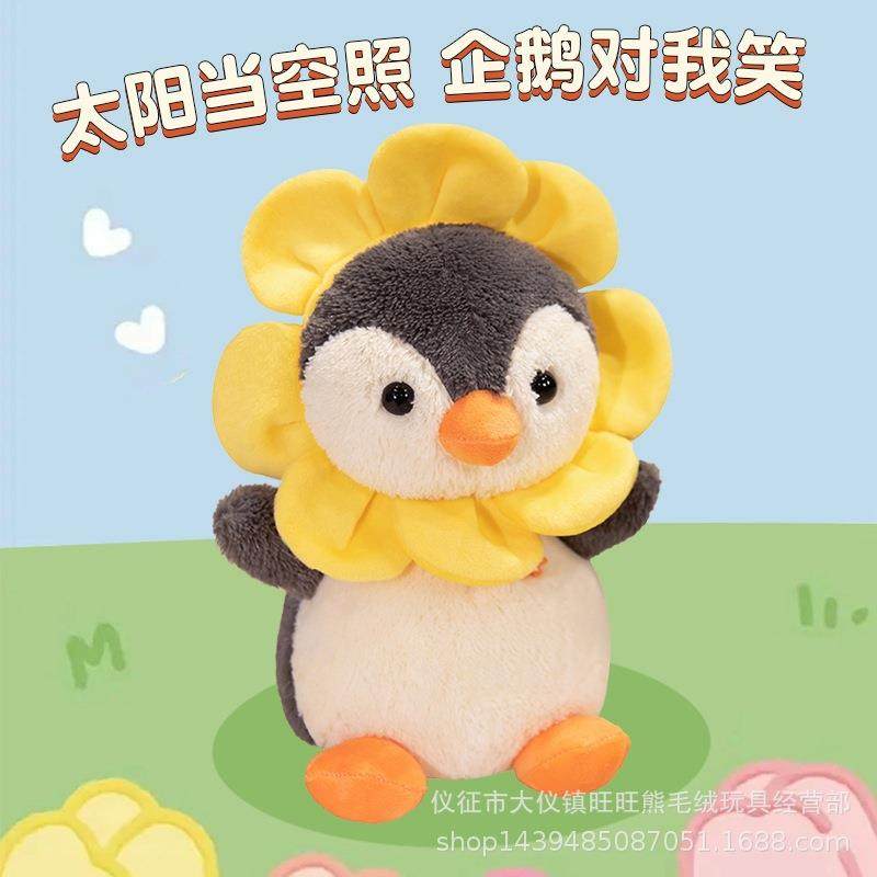 旺旺熊可爱太阳花企鹅公仔毛绒玩具安抚玩偶花生企鹅公仔儿童布娃